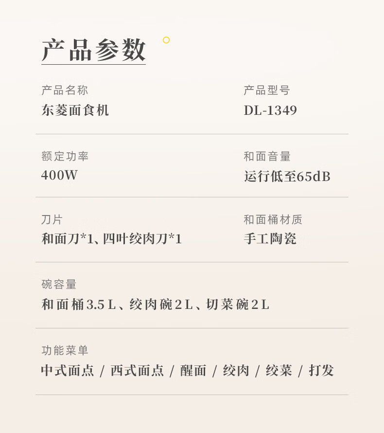 东菱(Donlim)家用多功能面食机厨师机 全自动绞肉和面机DL-1349