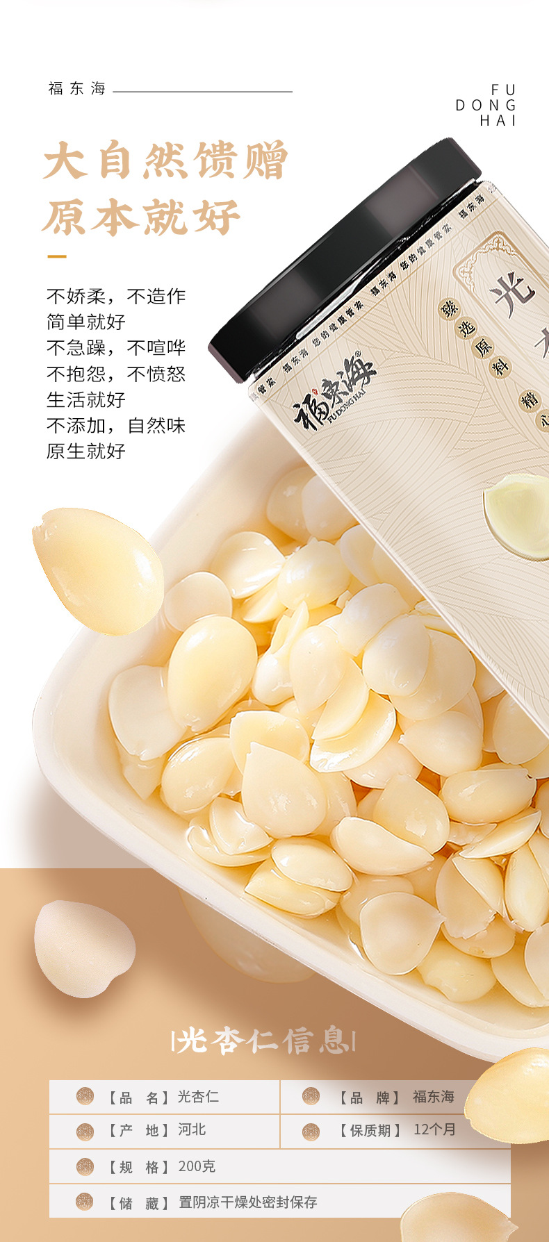 福东海 光杏仁 原料熟光白杏仁 五谷杂粮 养生杂粮代早餐 200g