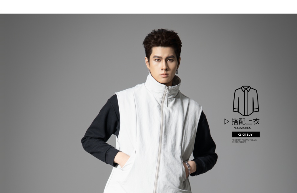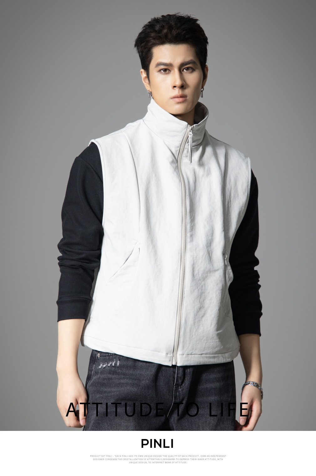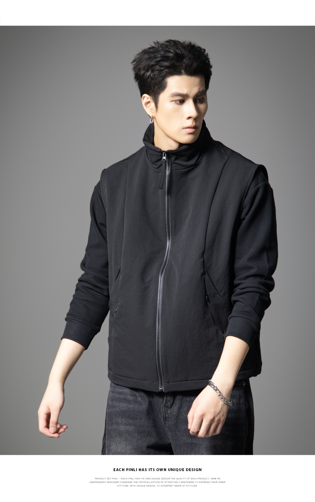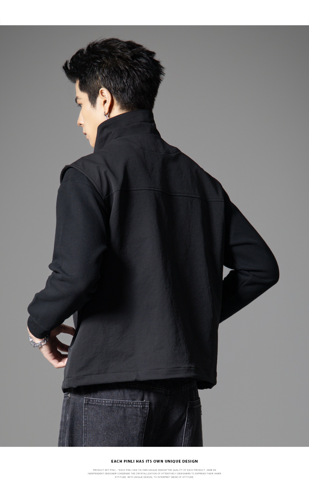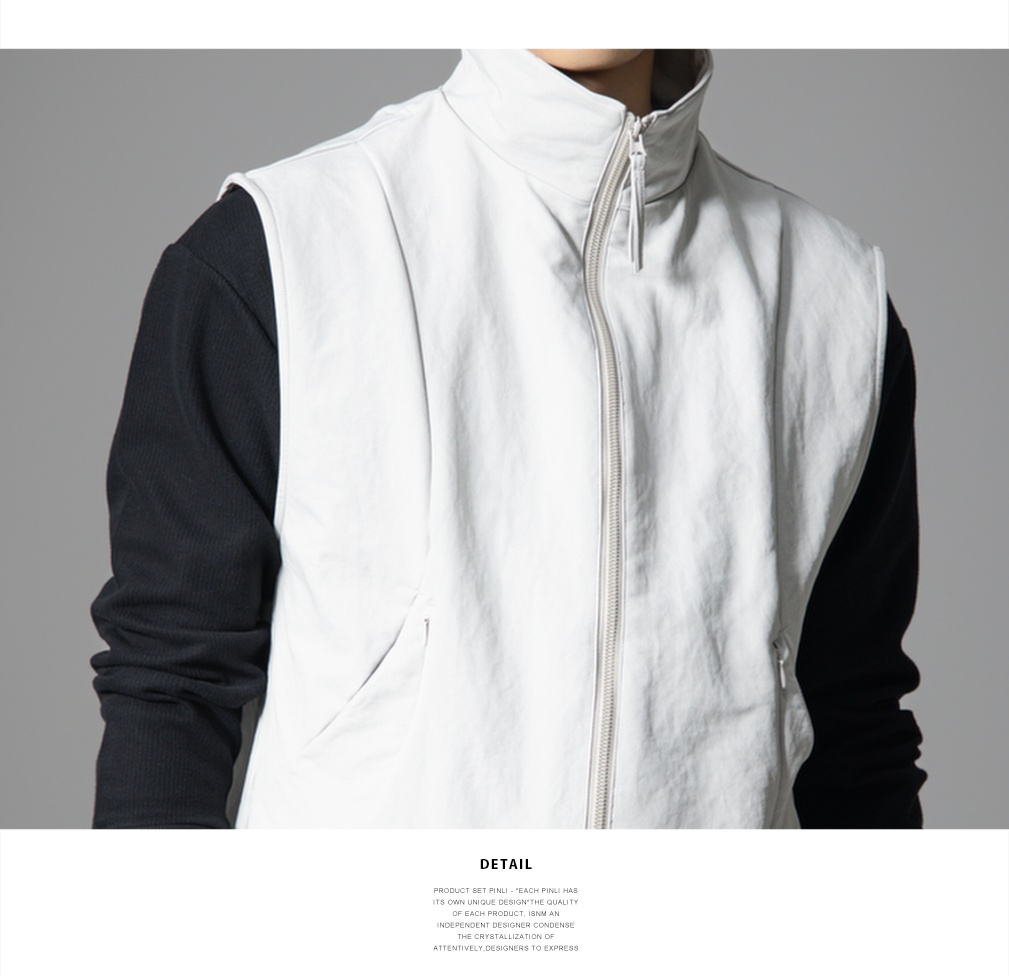 PINLI品立春季新款潮牌工装立领马甲男宽松休闲百搭背心外套GD253107152
