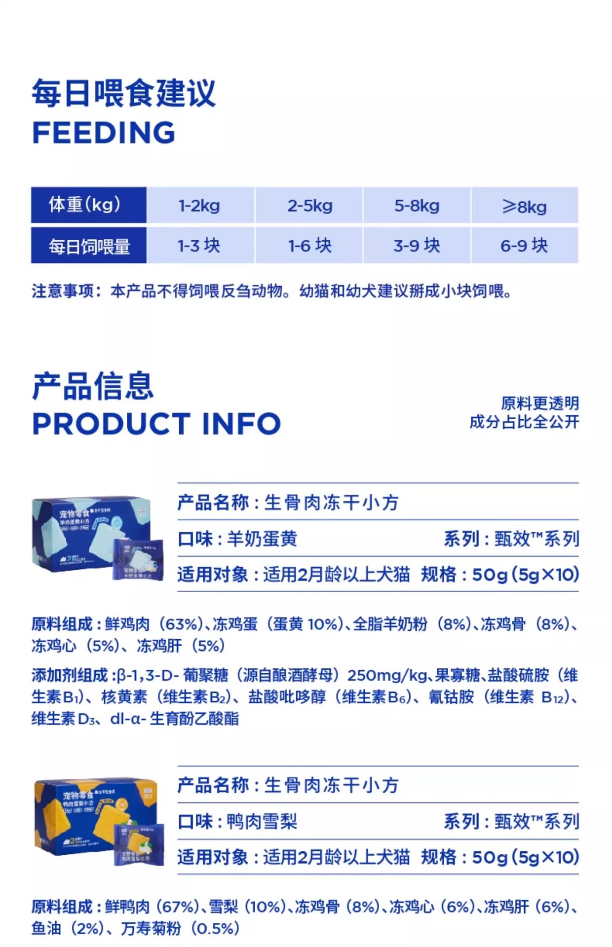 蓝氏 宠物零食【羊奶蛋黄冻干小方】猫咪骨肉猫狗乳鸽猫粮磨牙棒幼猫食物5g*10个
