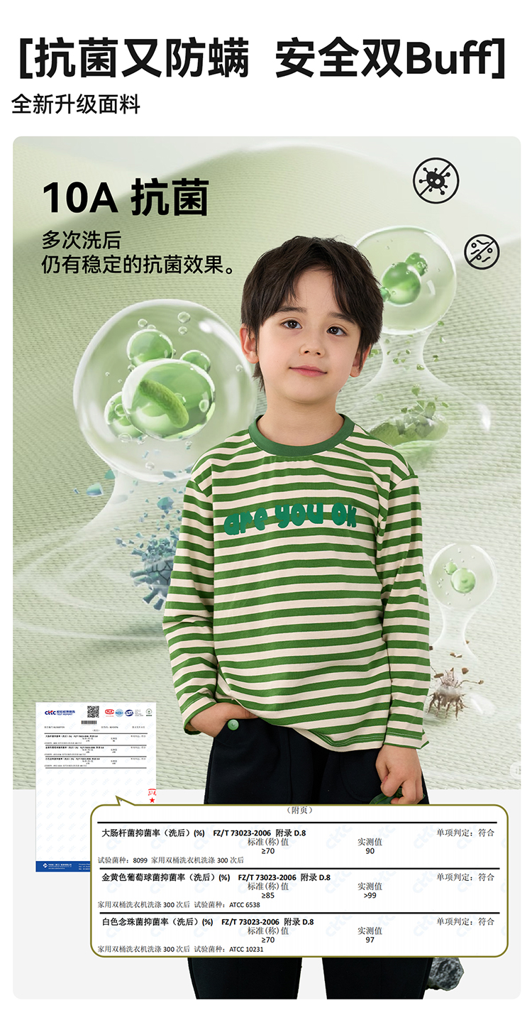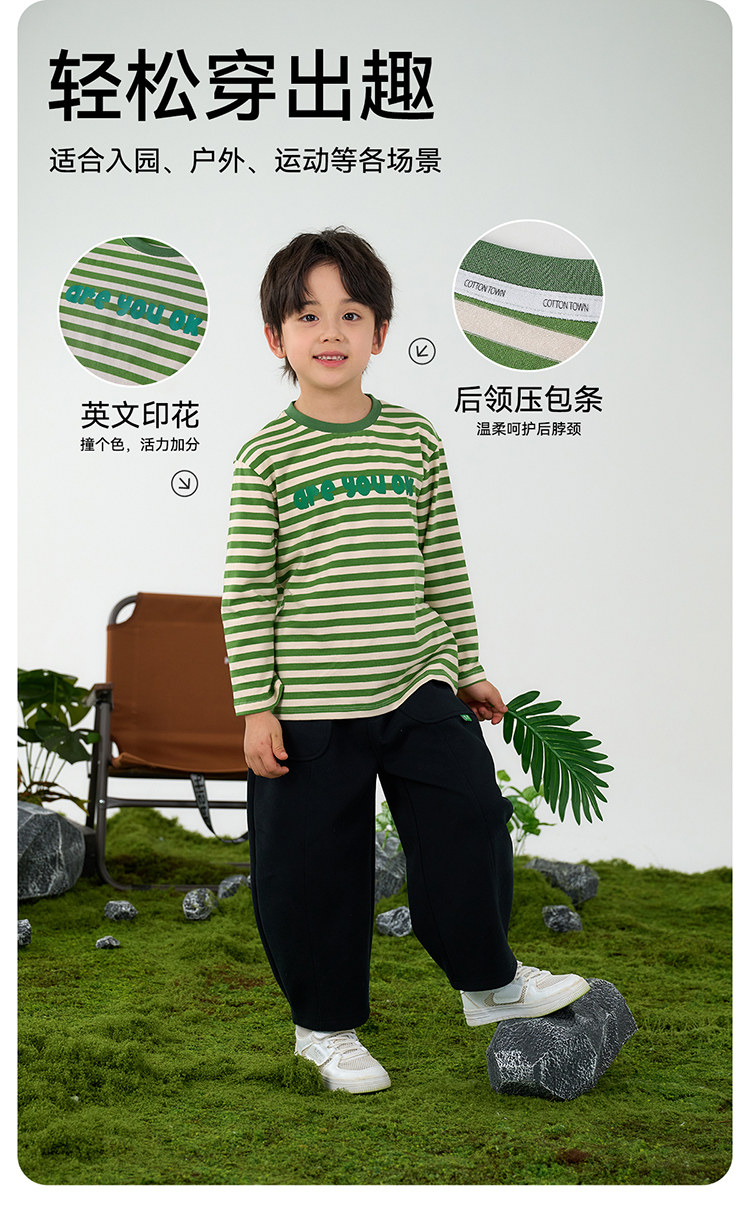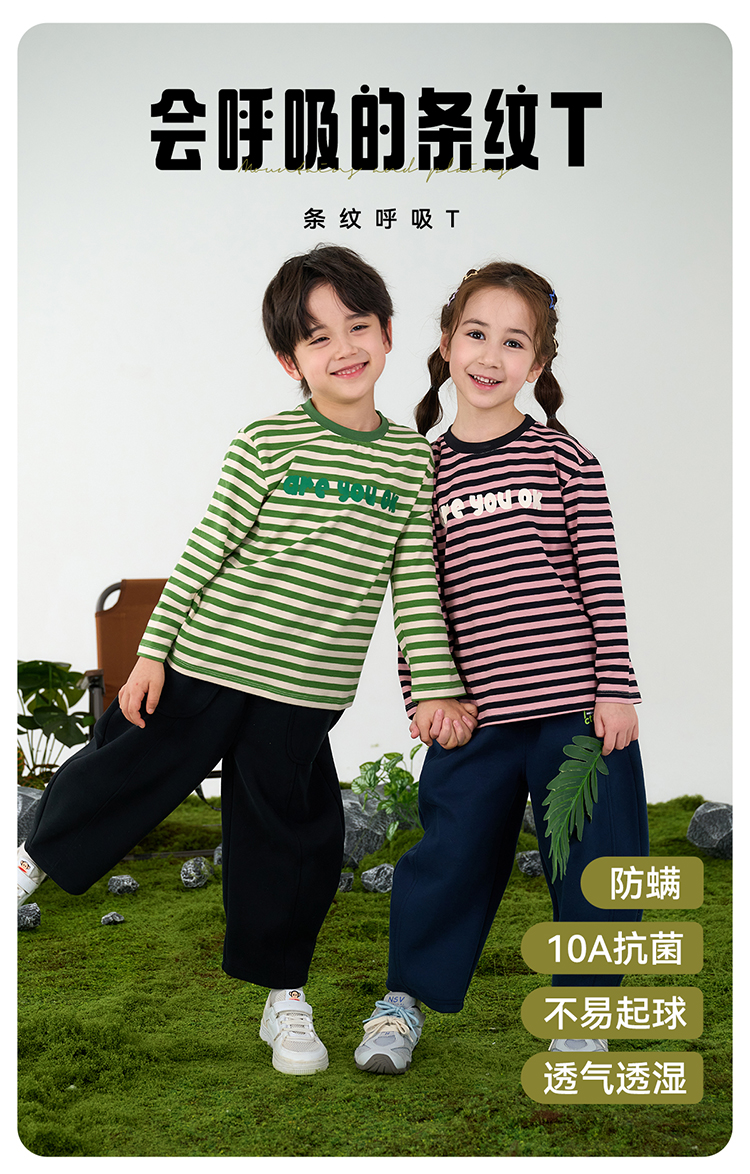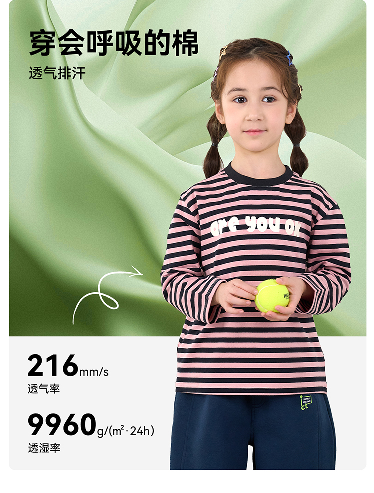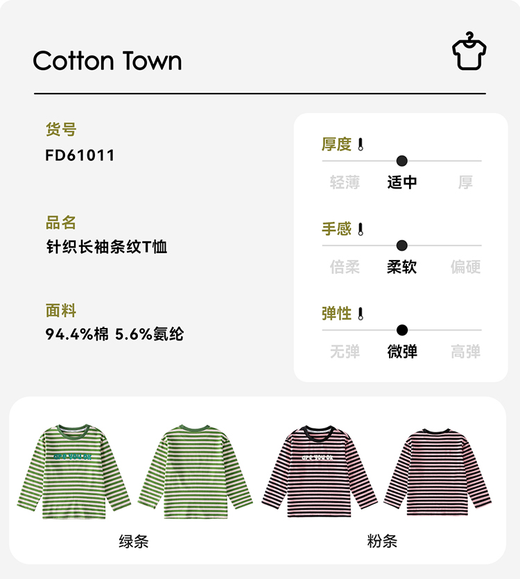 【会呼吸的T】棉花堂 针织长袖条纹T恤 百搭有型 10A级抗菌 FD61011