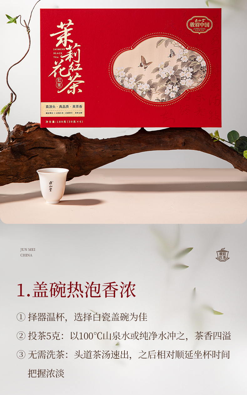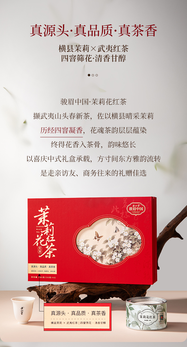正山堂骏眉中国 茉莉花红茶礼盒装 特级红茶正宗茶叶年货送礼180g