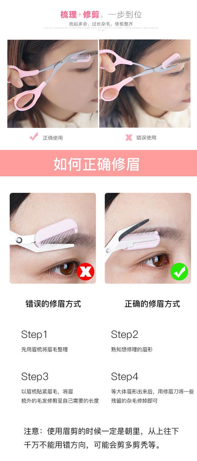 修眉剪刀带梳眉剪修眉刀刮眉毛刀片化妆剪刀眉卡画眉毛套装初学者