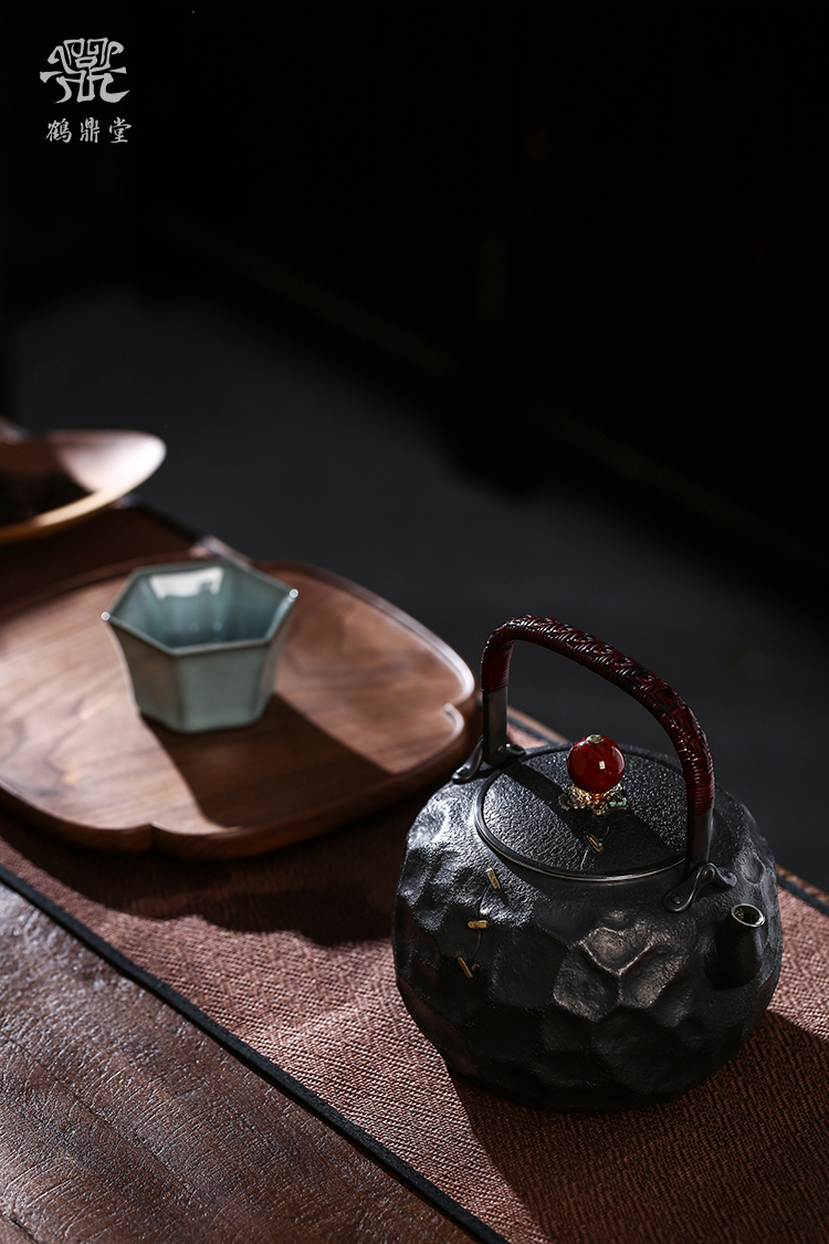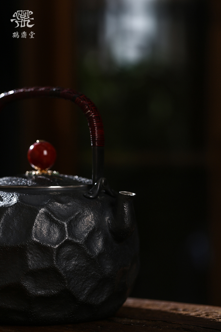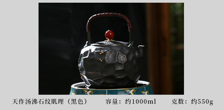 鹤鼎堂银壶于野系列天作汤沸石纹肌理(黑色)(缺货)