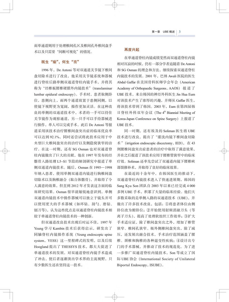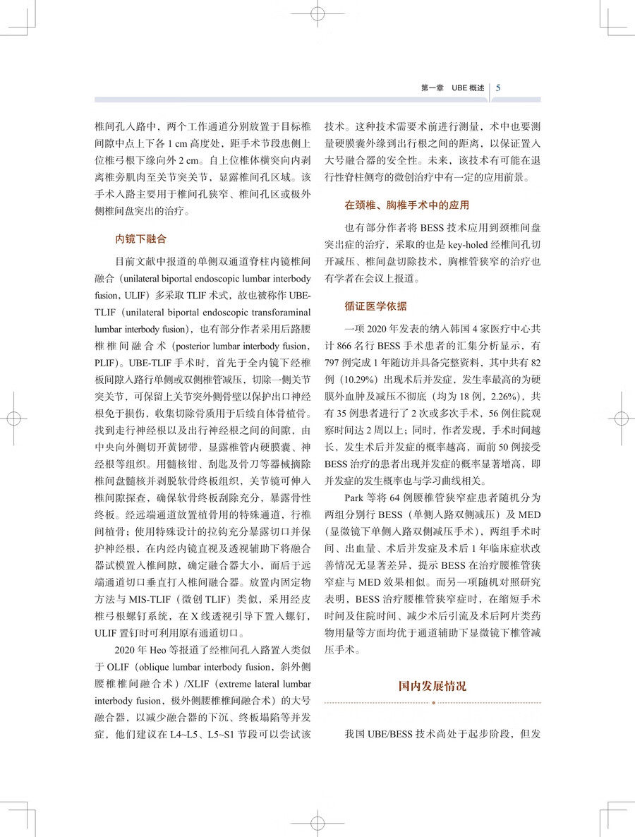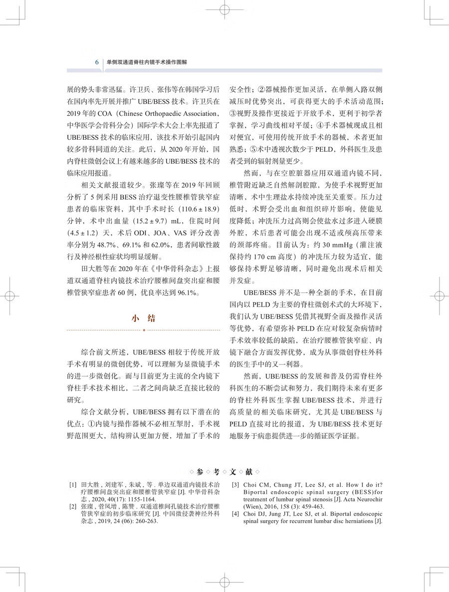 单侧双通道脊柱内镜(unilateral biportal endoscopy,UBE)技术经过近几年的快速发展和成熟,已被国内外专家广泛接受,被认为是脊柱外科下一代的微创技术。