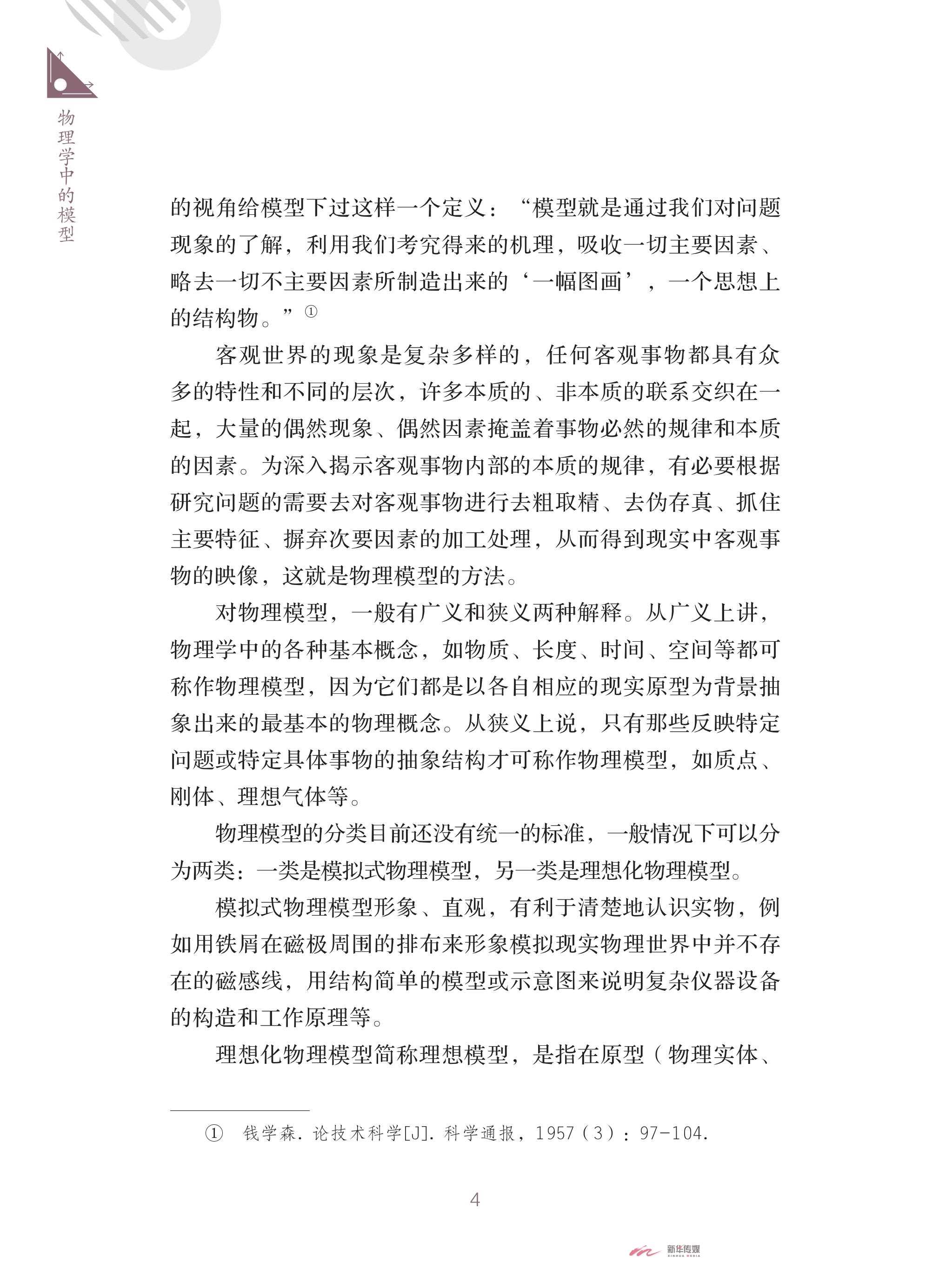 《物理学中的模型》主要介绍一代代物理学家在认识自然、解释自然现象以及探索事物变化与发展的过程中,基于前人的经验和智慧,通过对事物物理本质的敏感与想象、抽象与概括,塑造出一个个重要的物理模型。物理模型是一个理想化的形态,本书将物理模型分为实体理想模型、系统理想模型、过程理想模型以及与物理现象深度相关的数学模型。从这些物理模型诞生的历史经验和思维过程出发,我们可以深入理解物理模型生成的一般思维过程,洞悉物理模型的内涵本质,发掘物理模型在物理学发展中的作用,发展读者的物理学科素养。