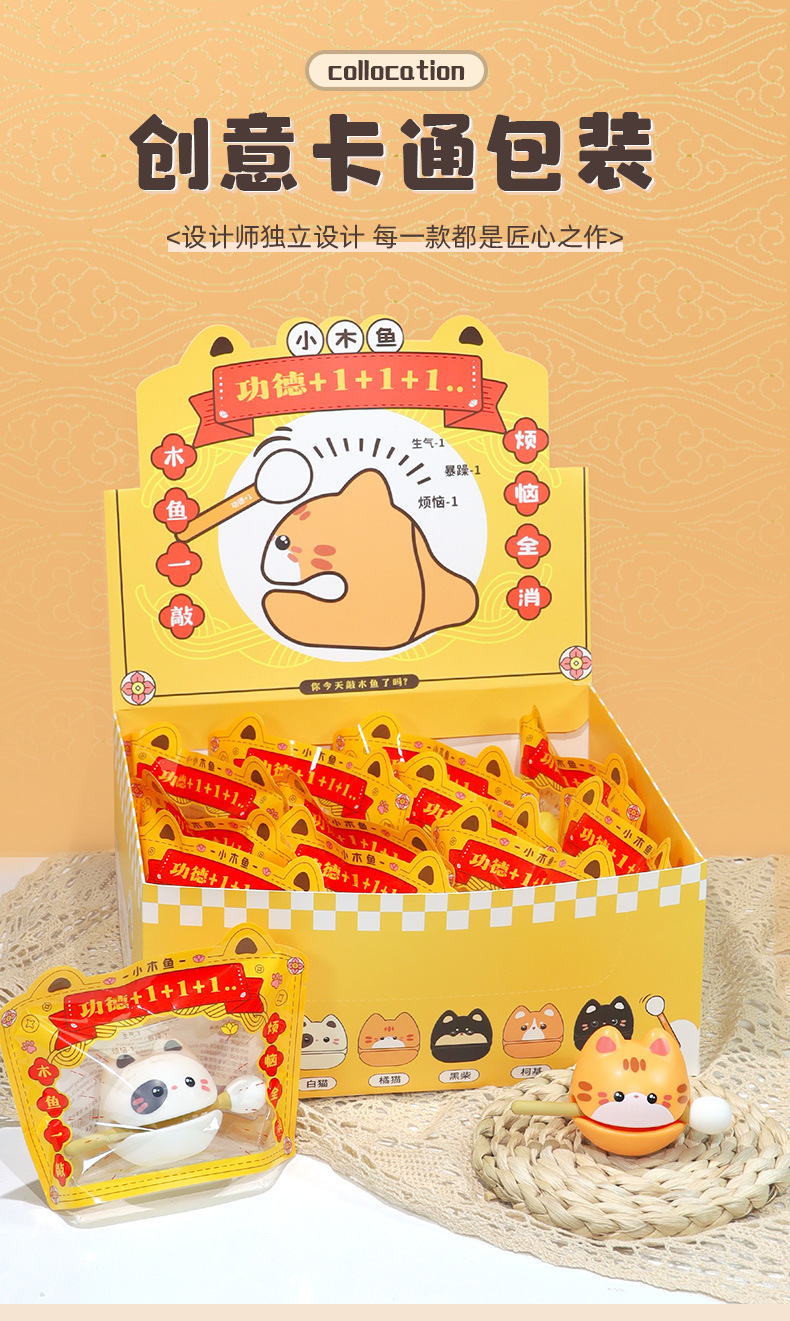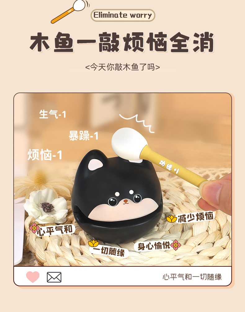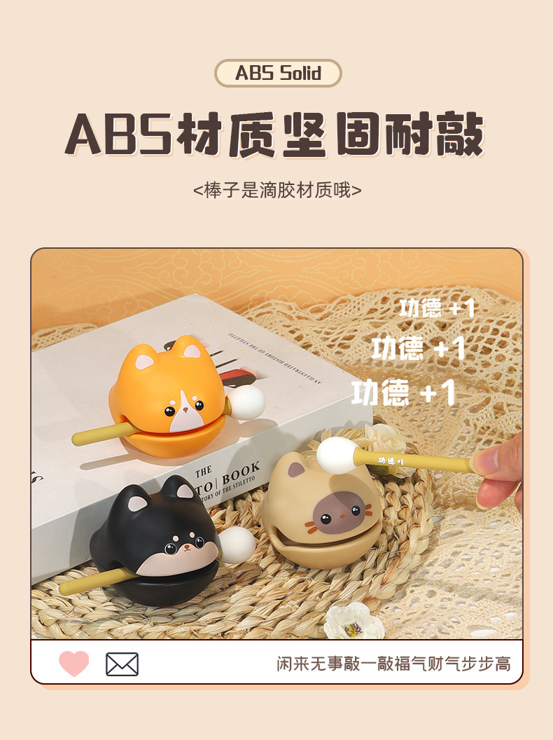 【功德+1+1+1❗️办公室解压摆件】木鱼一敲烦恼全消,静心解压神器,ABS材质坚固耐敲,办公室解压摆件佛系减压玩具功德木鱼静心小 摆件礼品Y新年礼盒年货礼盒