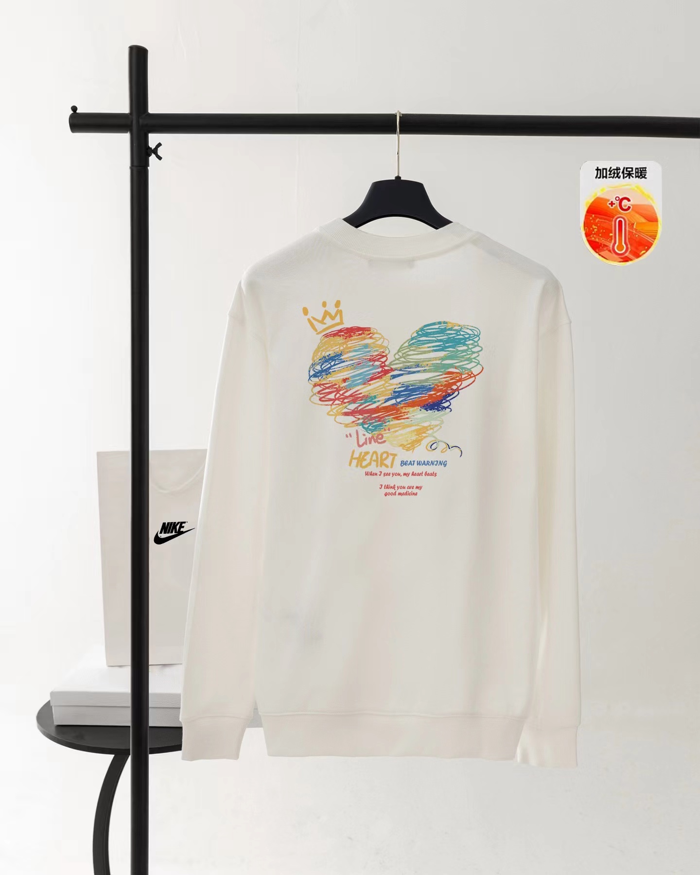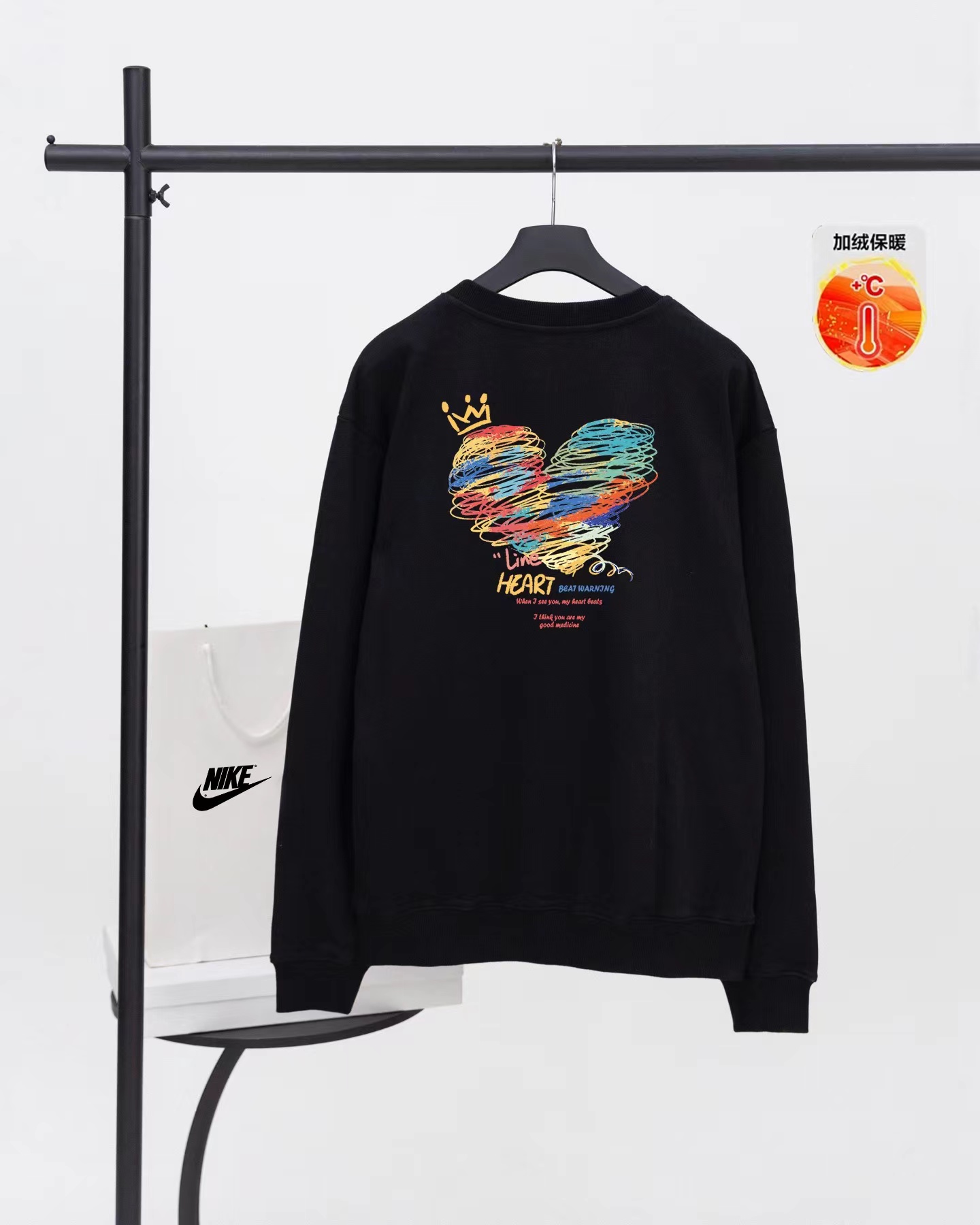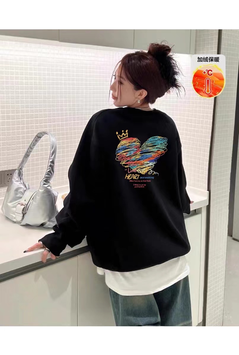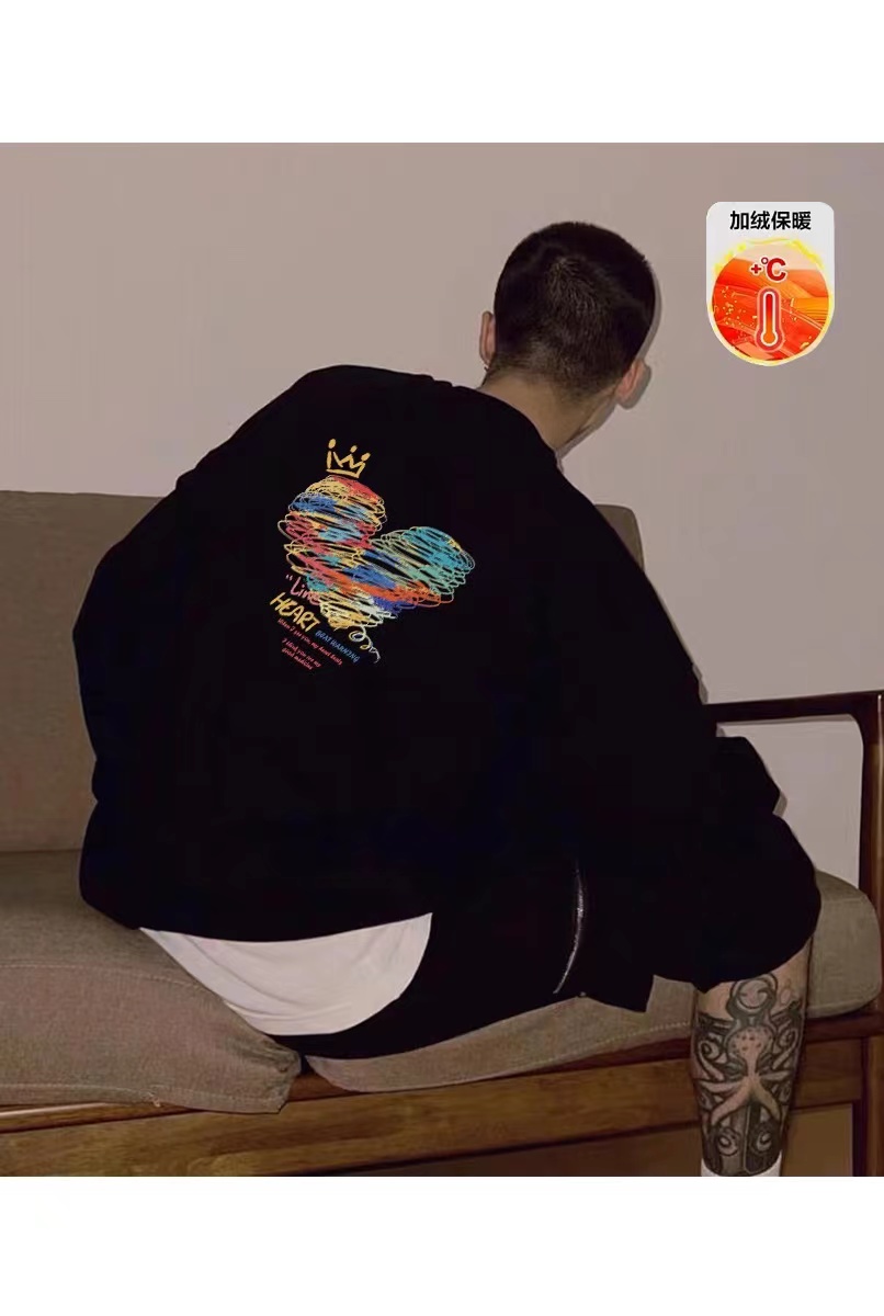 【高品质加绒加厚】 线条爱心画 抓绒保暖圆领卫衣 男女同款