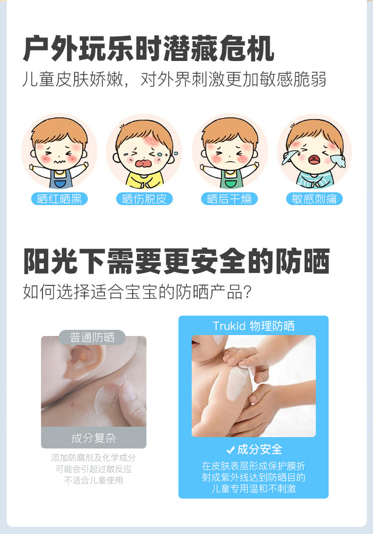 【 直播专链】TruKid 美国进口婴幼儿儿童防晒霜纯物理防晒 防水日用防晒 SPF30