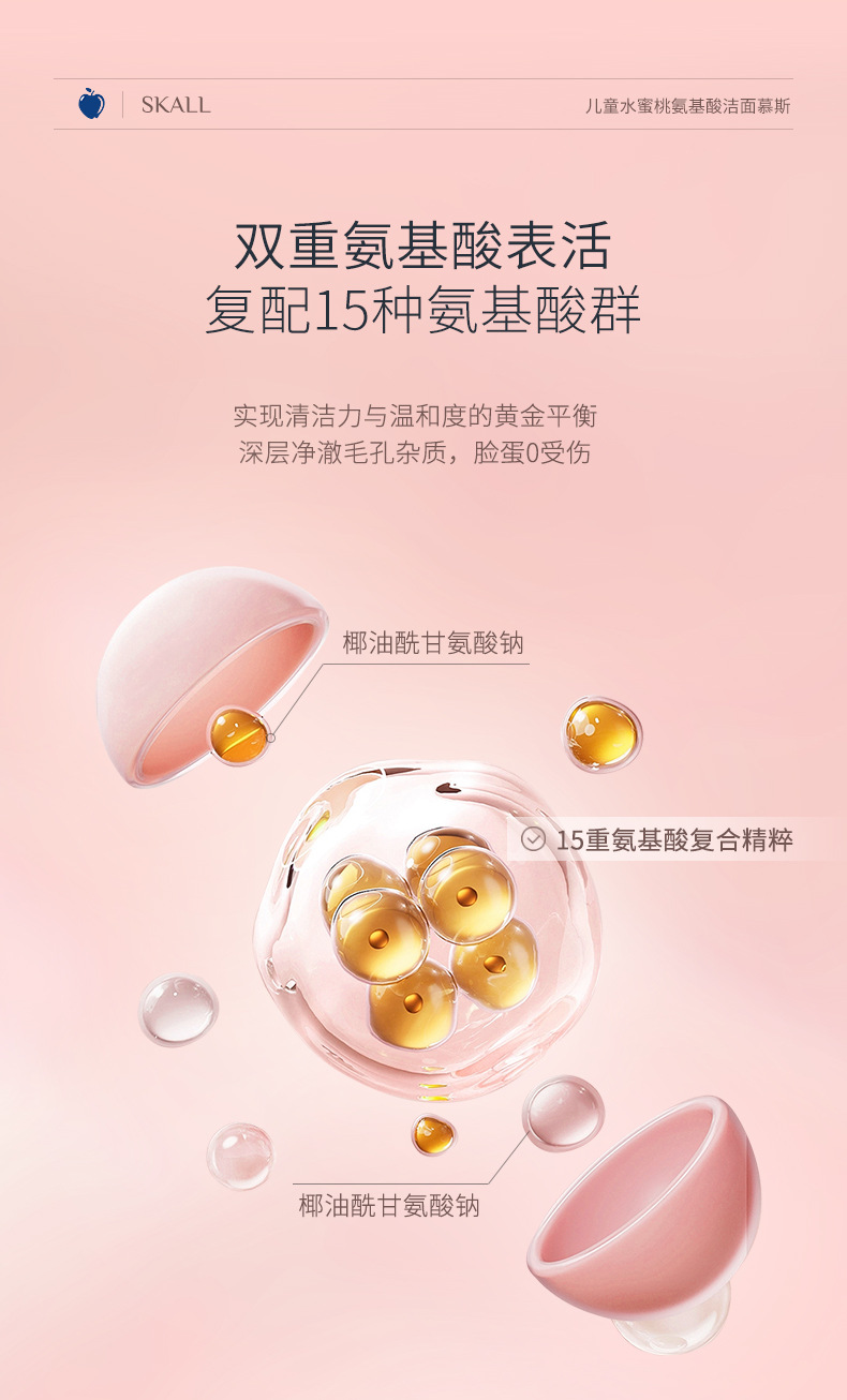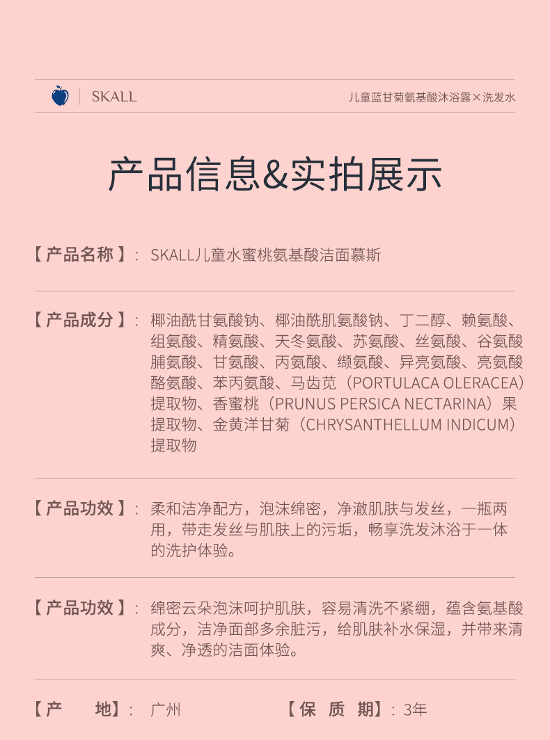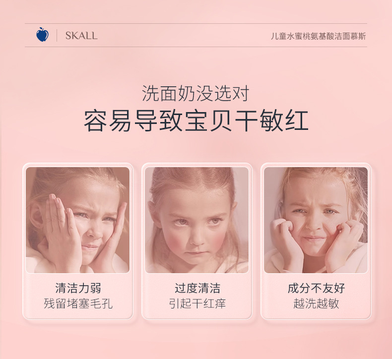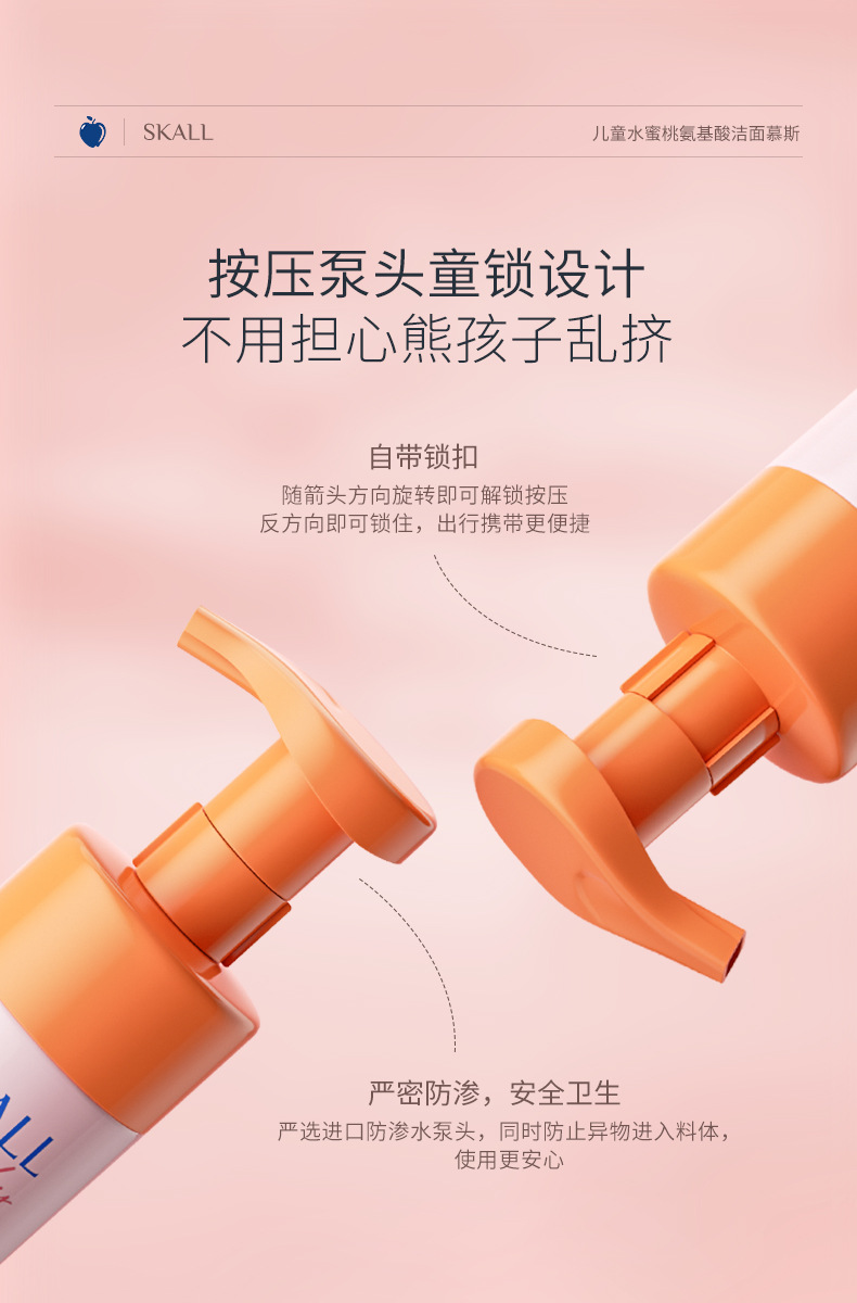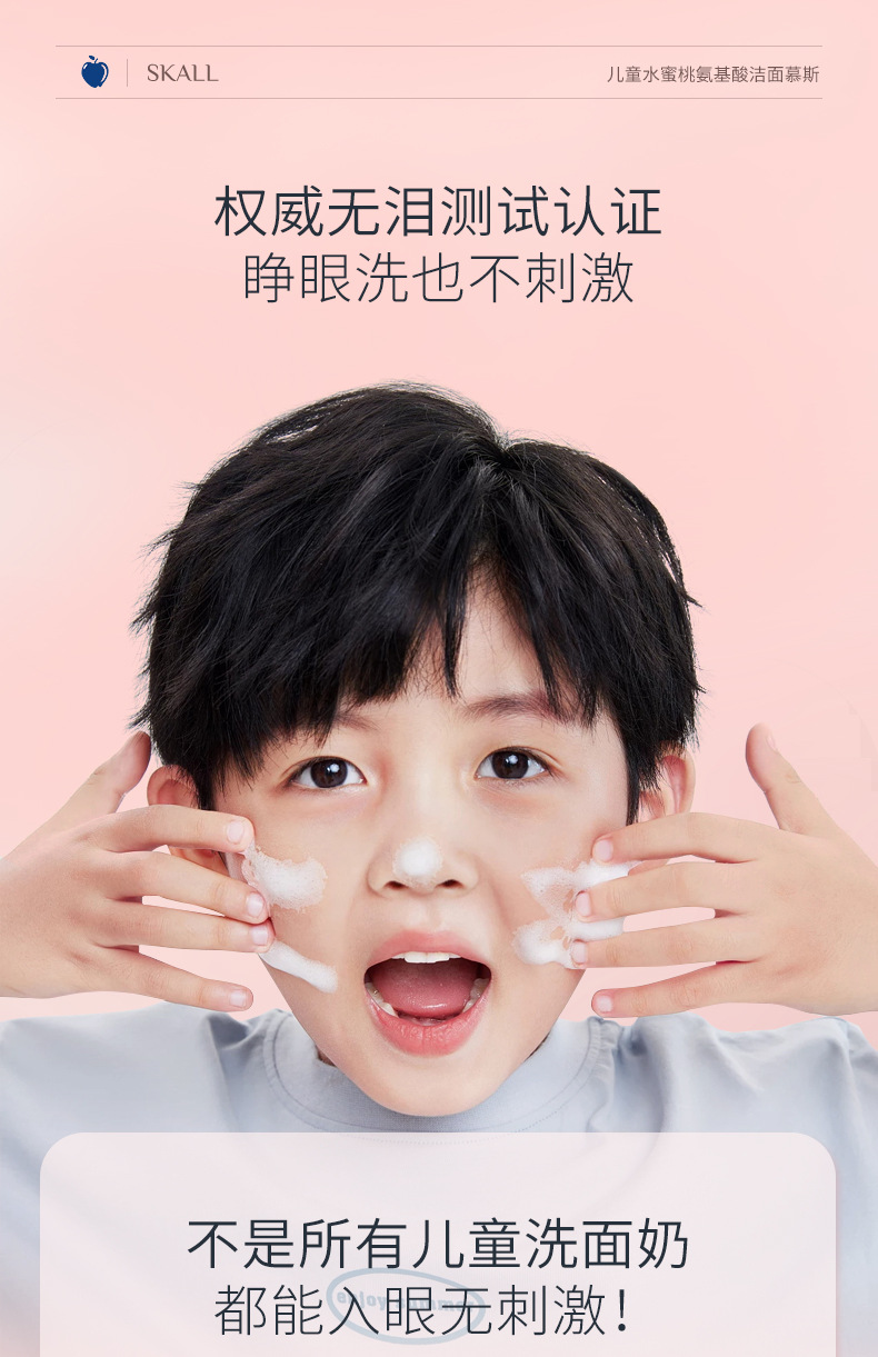 【粉丝专属❗️儿童氨基酸洁面慕斯】专为3+岁儿童研发,洗出嫩滑小脸!水蜜桃温和清洁慕斯宝宝洁面乳青少年洗面奶泡泡