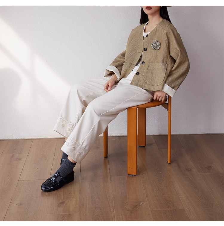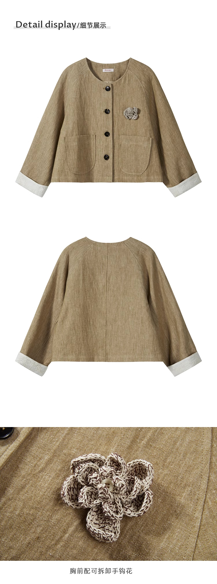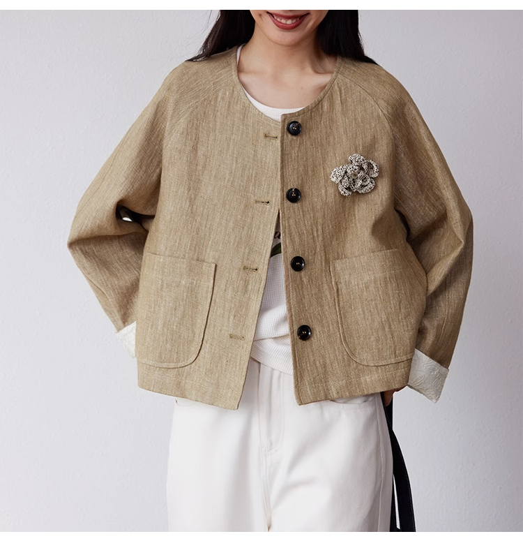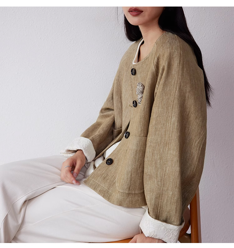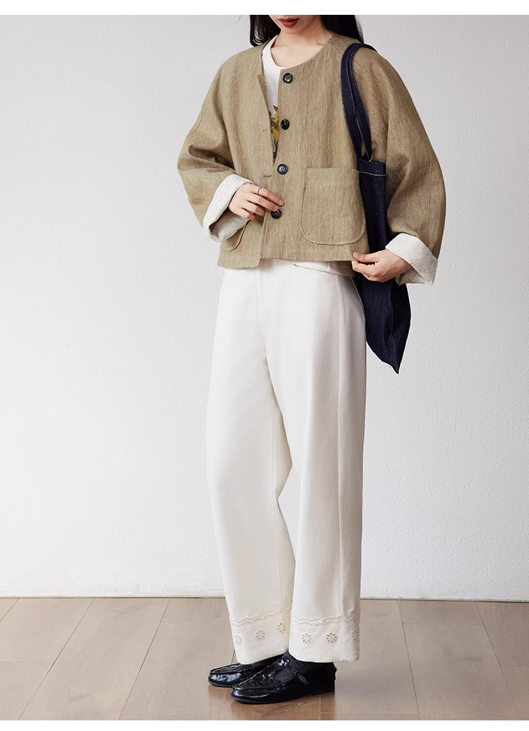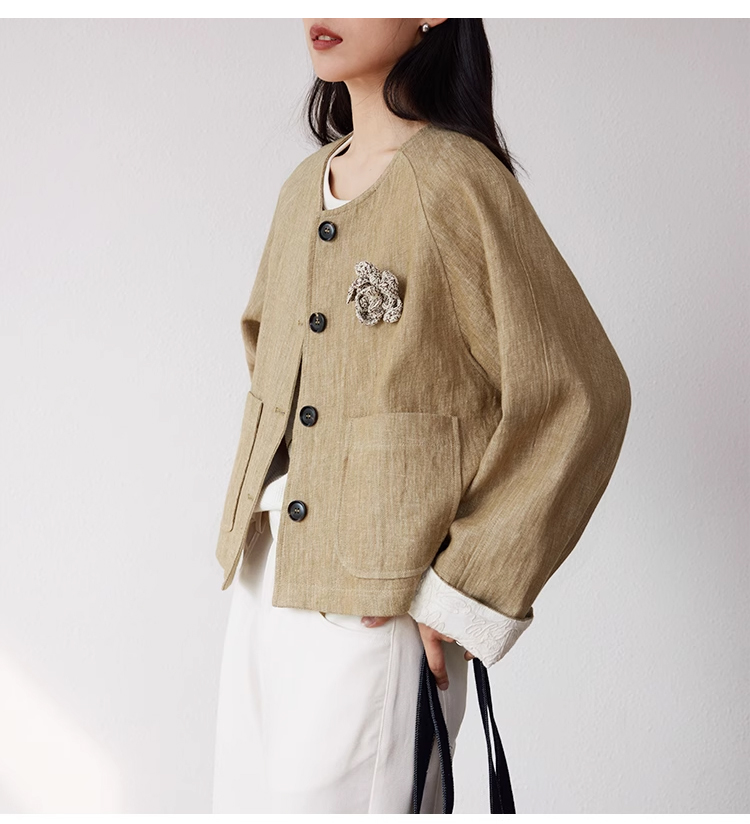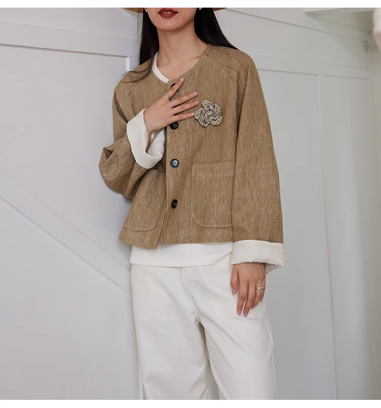裁缝学苑AQ369亚麻短外套纸样女装插肩袖圆领长袖上衣样板