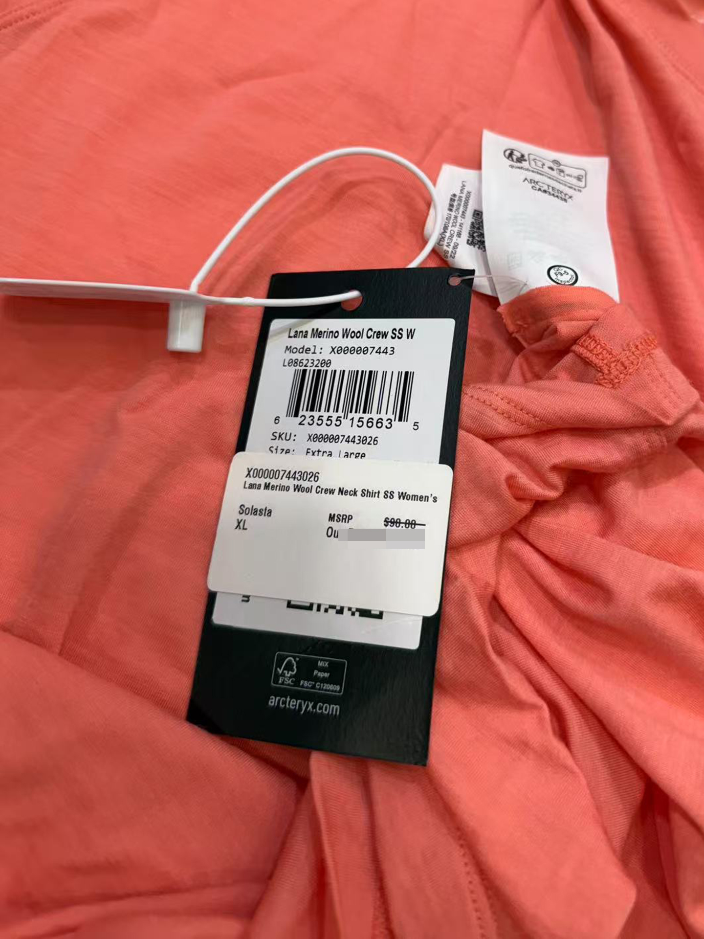 ARC'TERYX/始祖鸟 LANA 女士羊毛混纺纯色圆领短袖T恤 28018