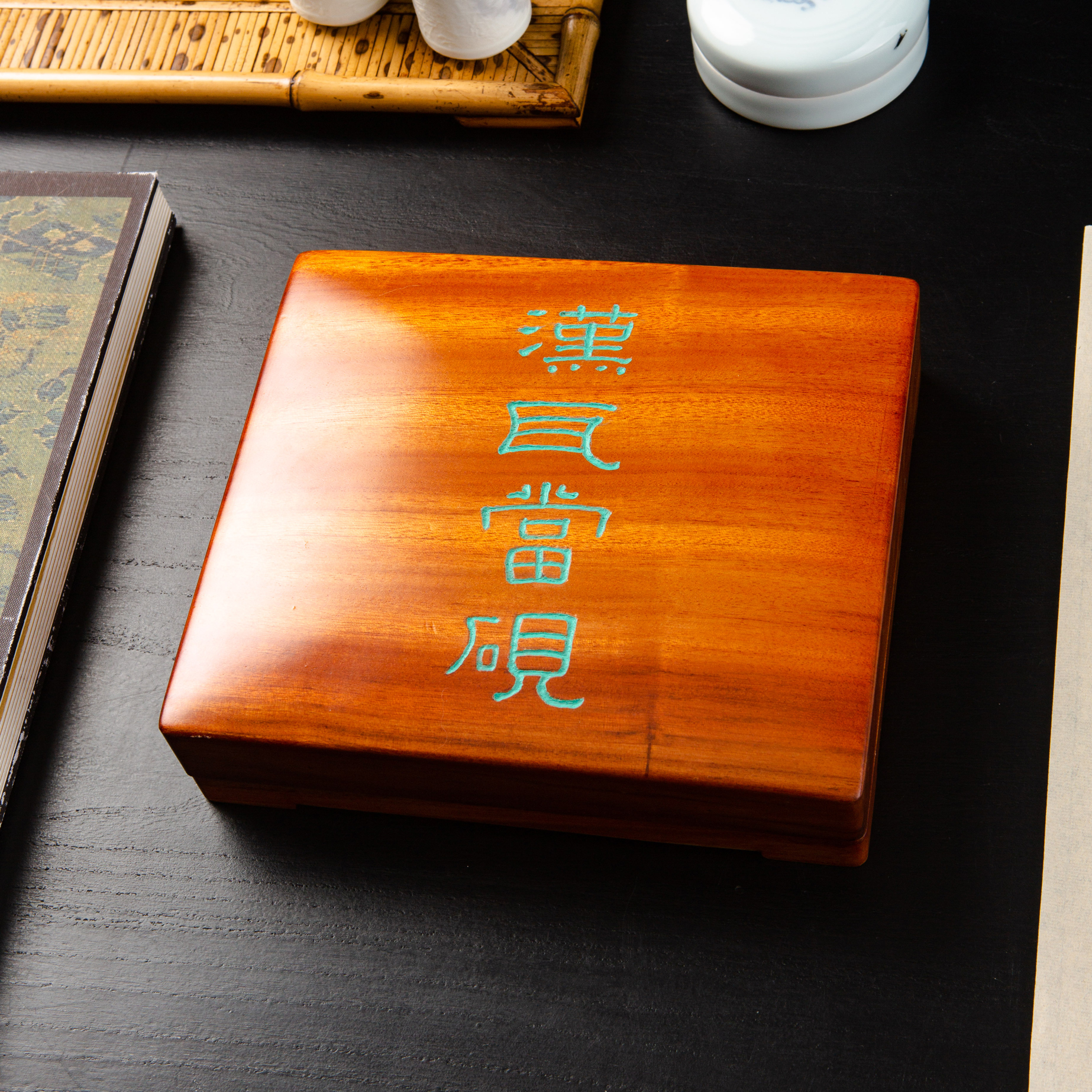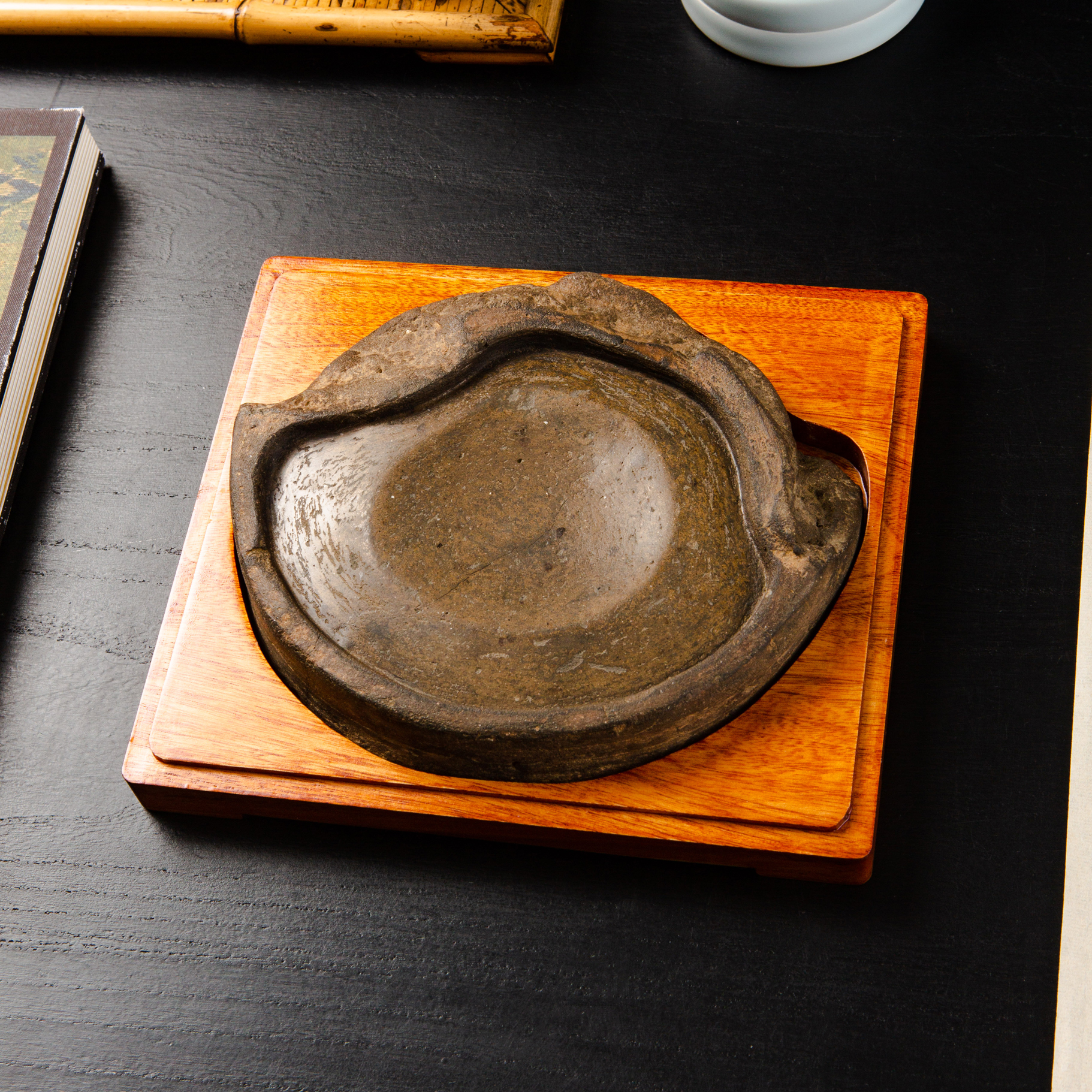 汉代“长生无极”瓦当制砚,其文字精美古拙,字口清晰有力度,胎质坚实细腻,整体呈现古朴之气息,且配有手工精制刻字木盒,十分难得。