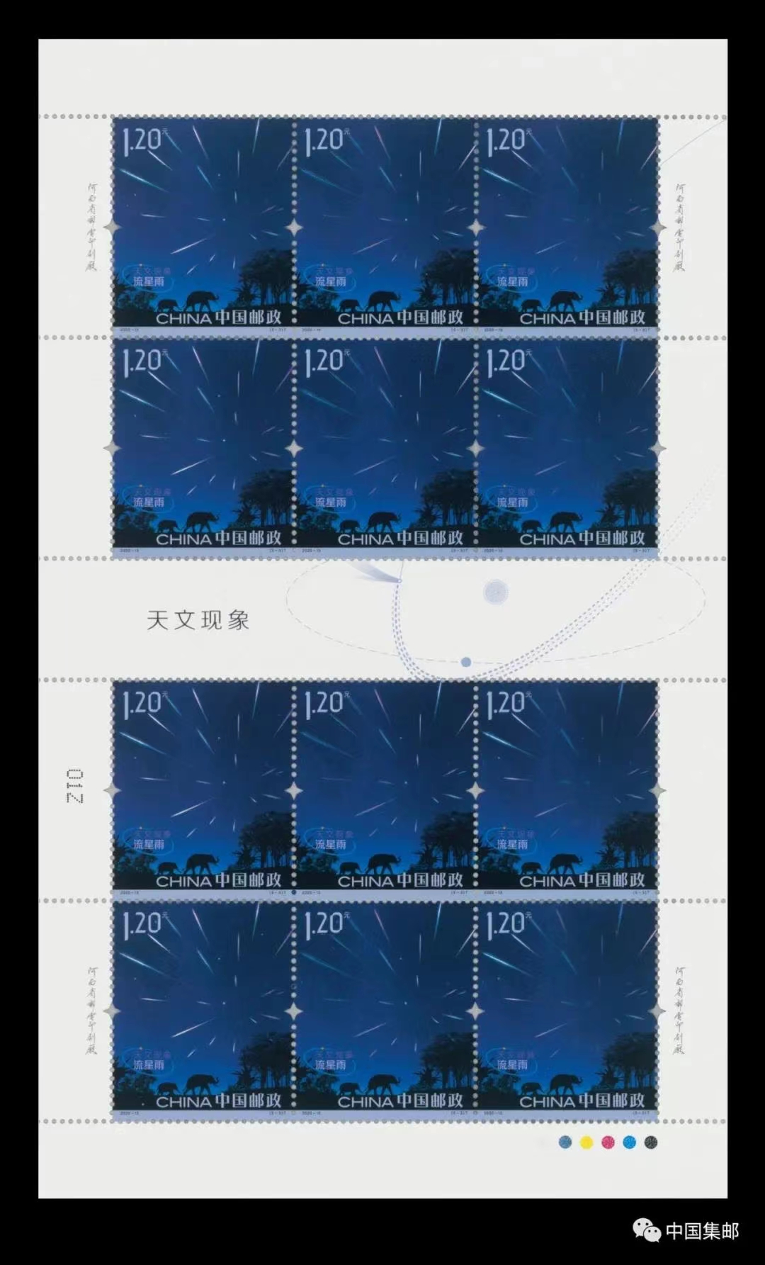 流星雨邮票的立体幻彩材料突显出时而一泻千里、时而一闪即逝流星雨的效果。