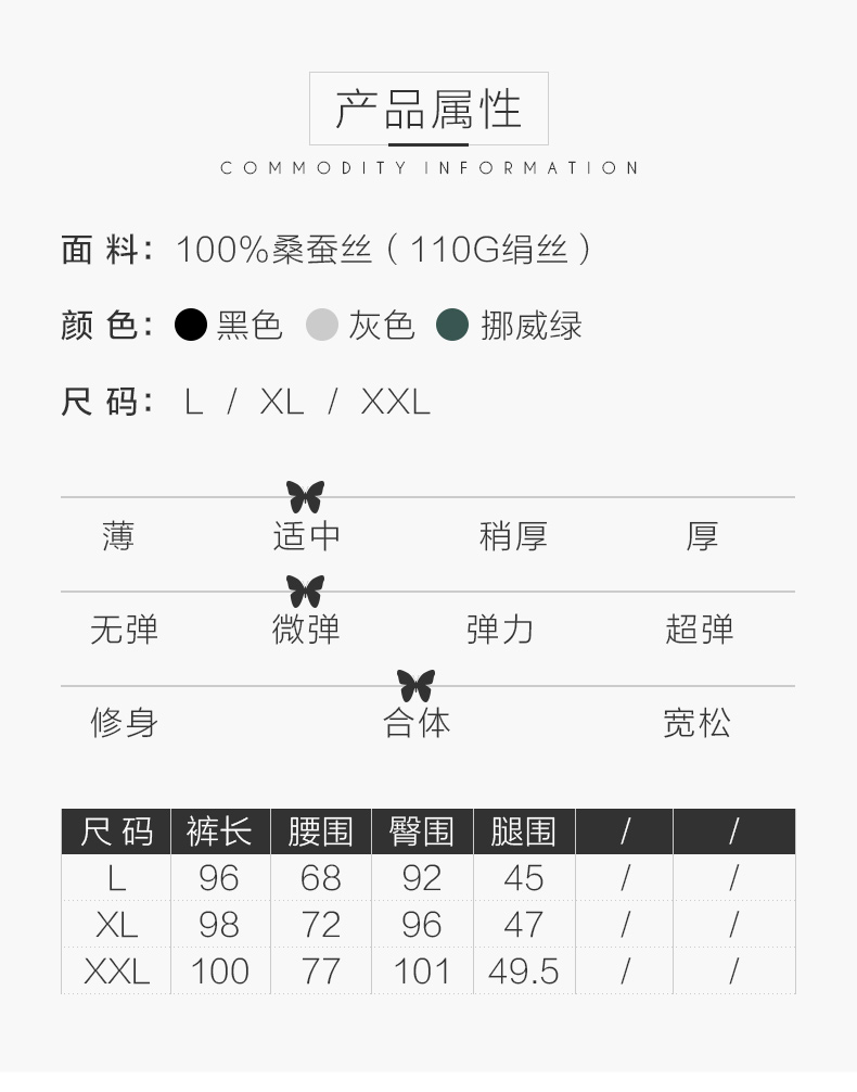 金三塔秋冬新品 真丝睡裤男100%桑蚕丝打底裤保暖秋裤 1NZM9C901