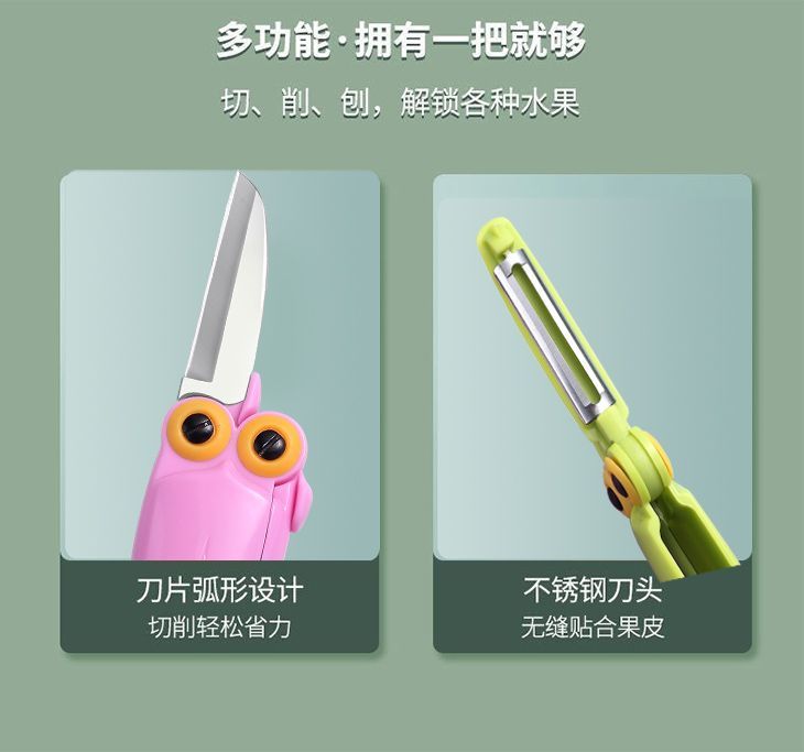 水果刀家用二合一瓜果削皮折叠小刀辅食宿舍多功能便携小鸟迷你刀