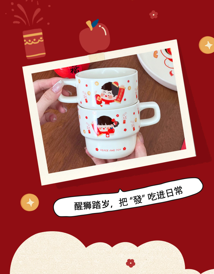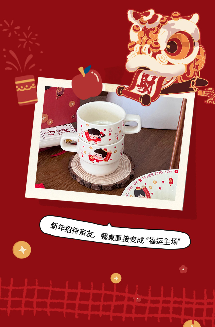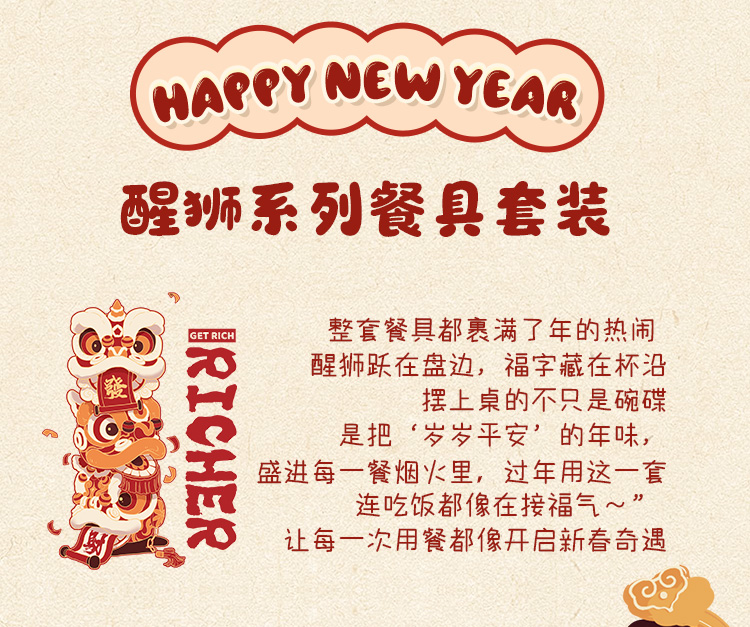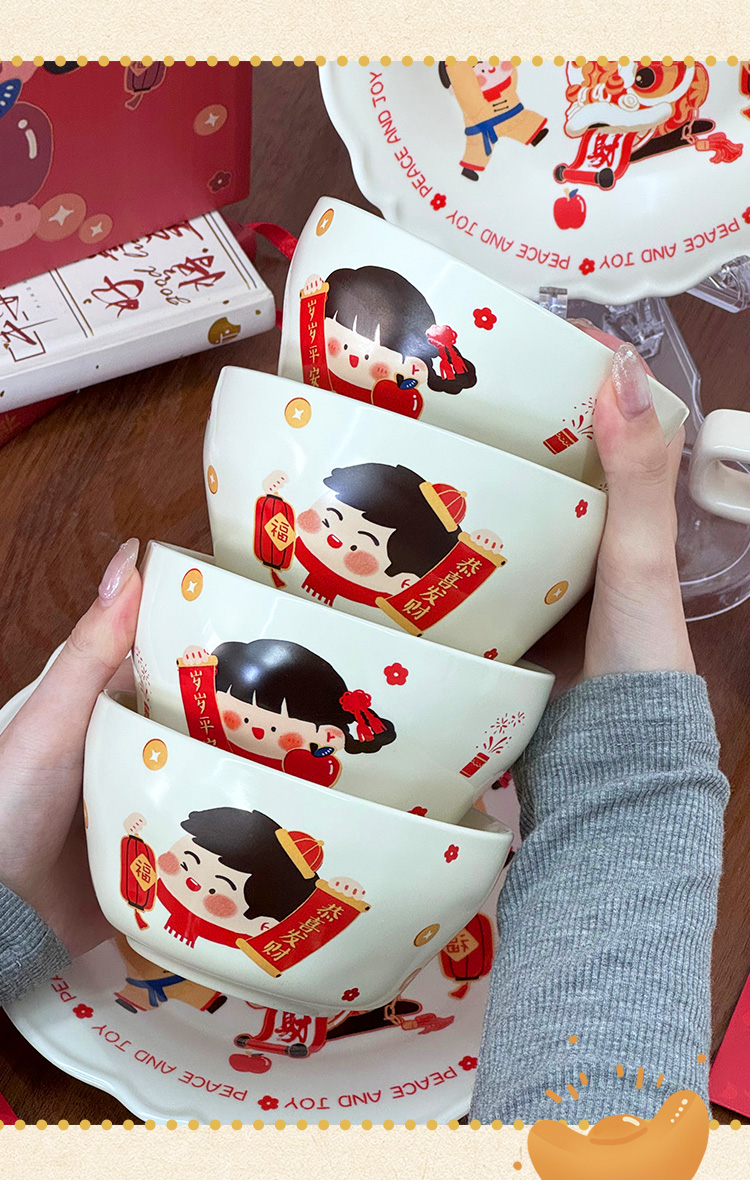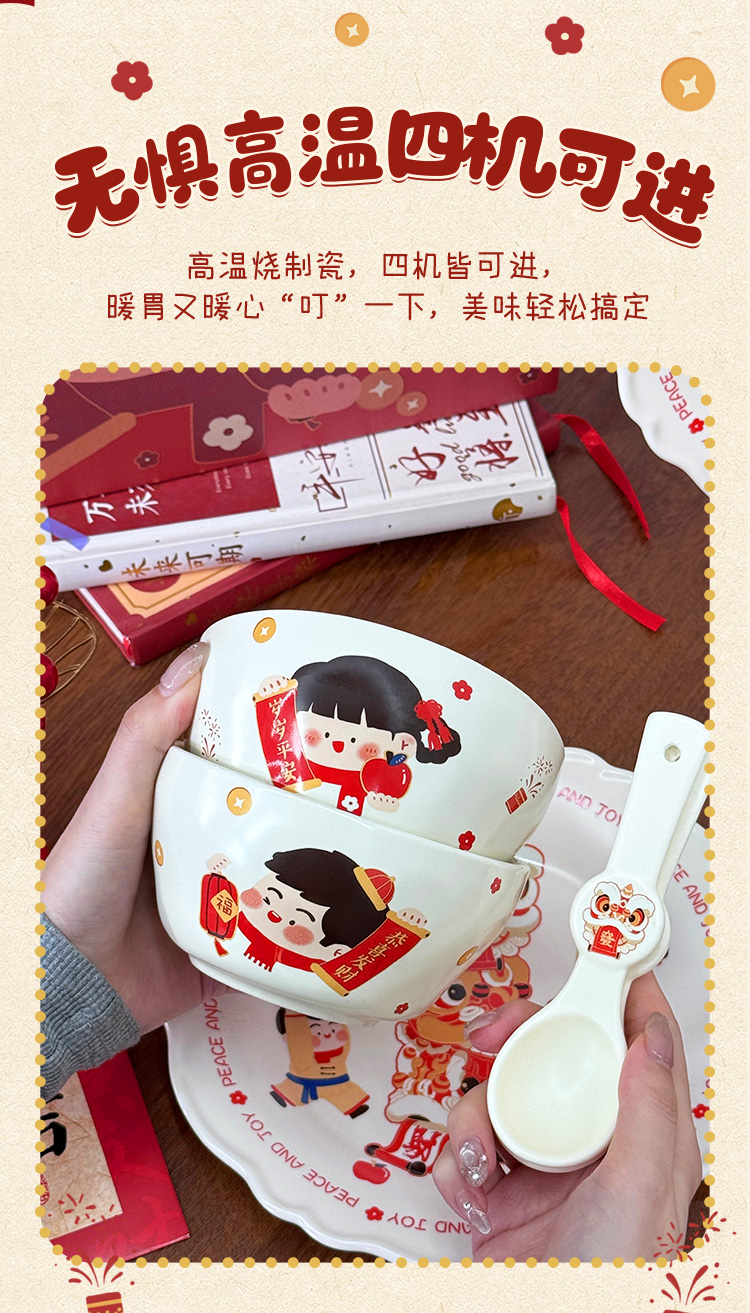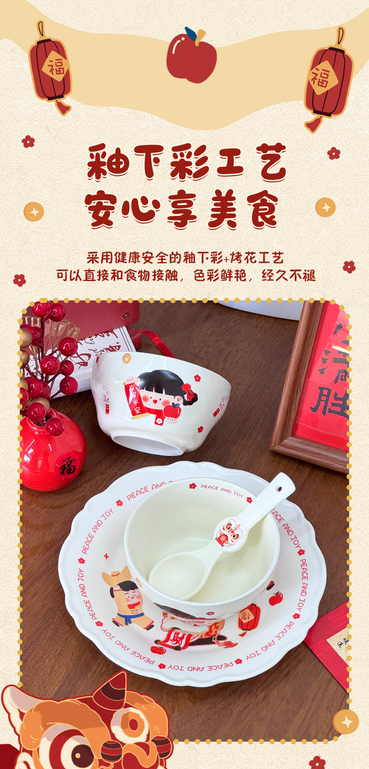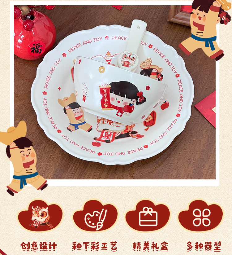 【醒狮礼盒餐具】喜庆醒狮餐具碗盘勺家庭套装送礼好看碗碟家用