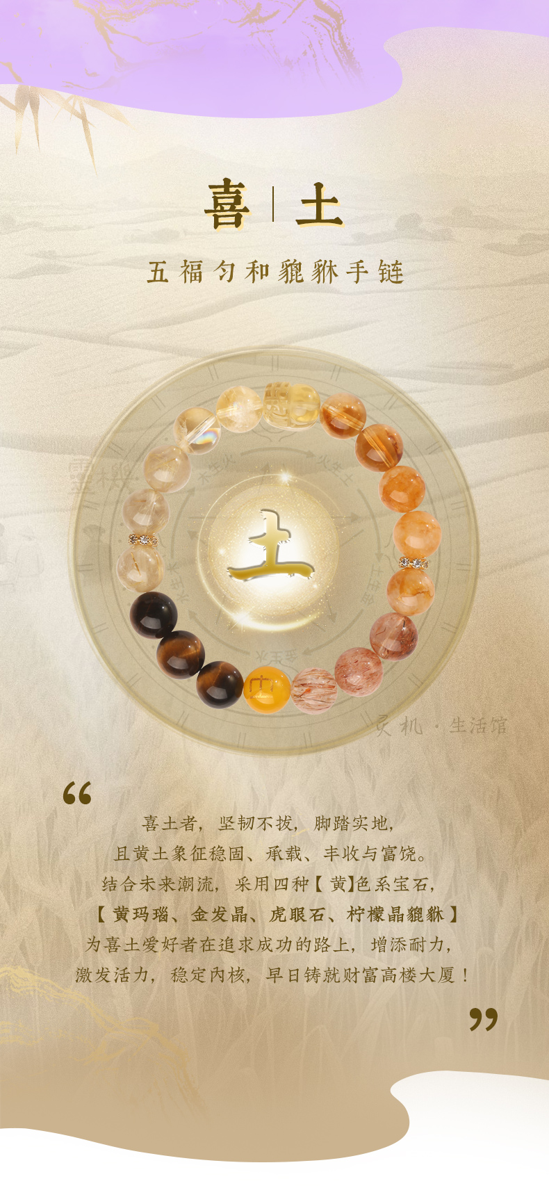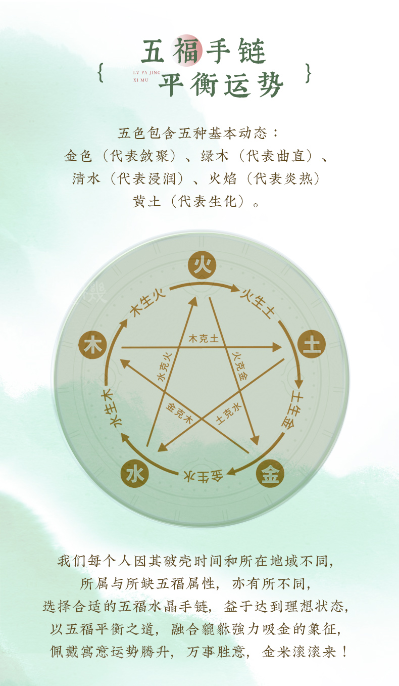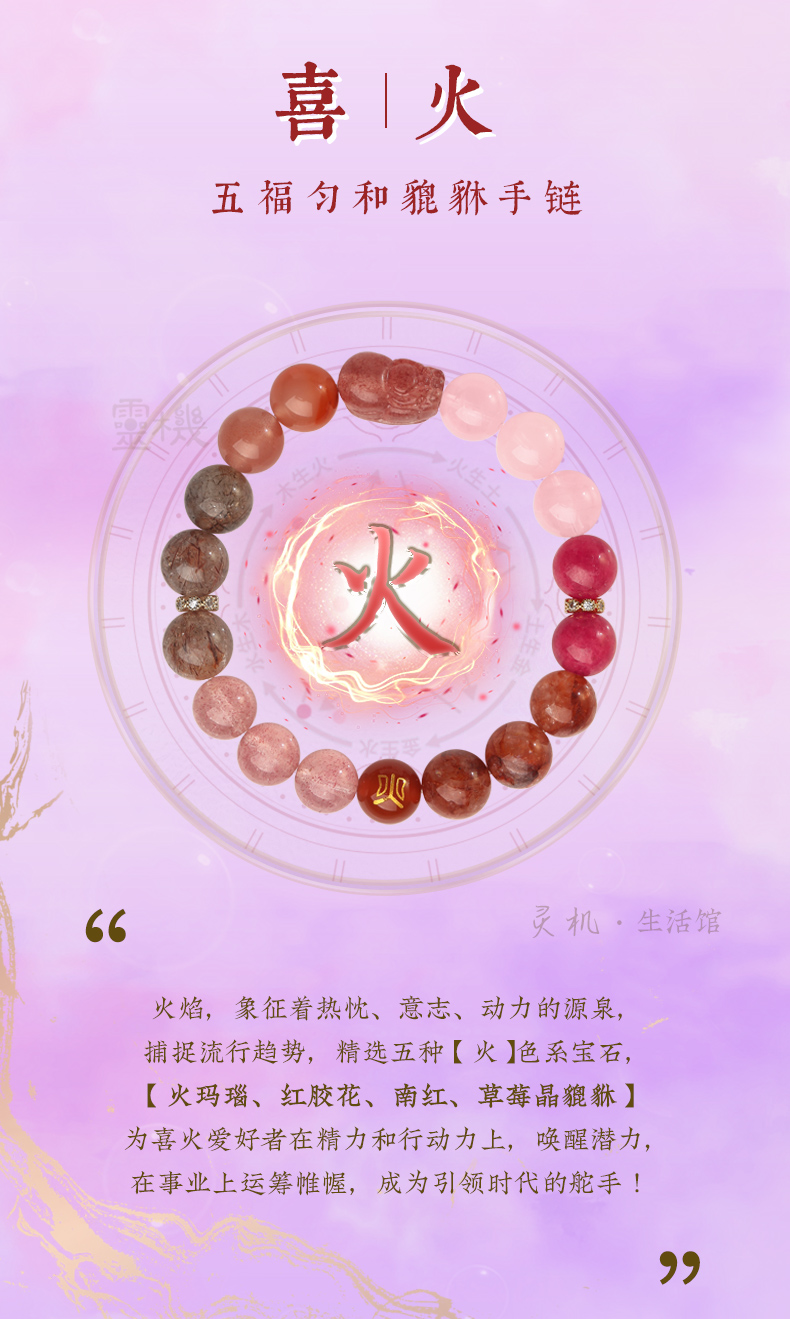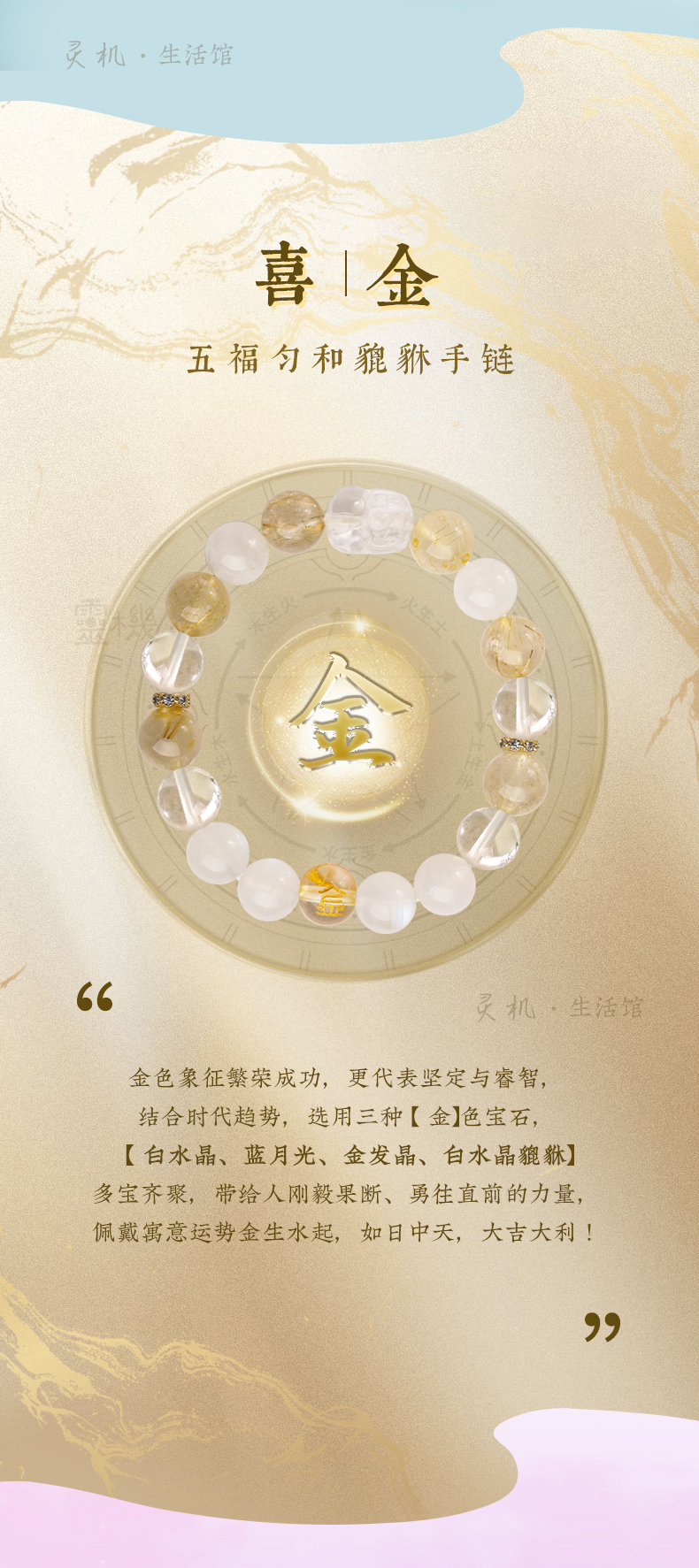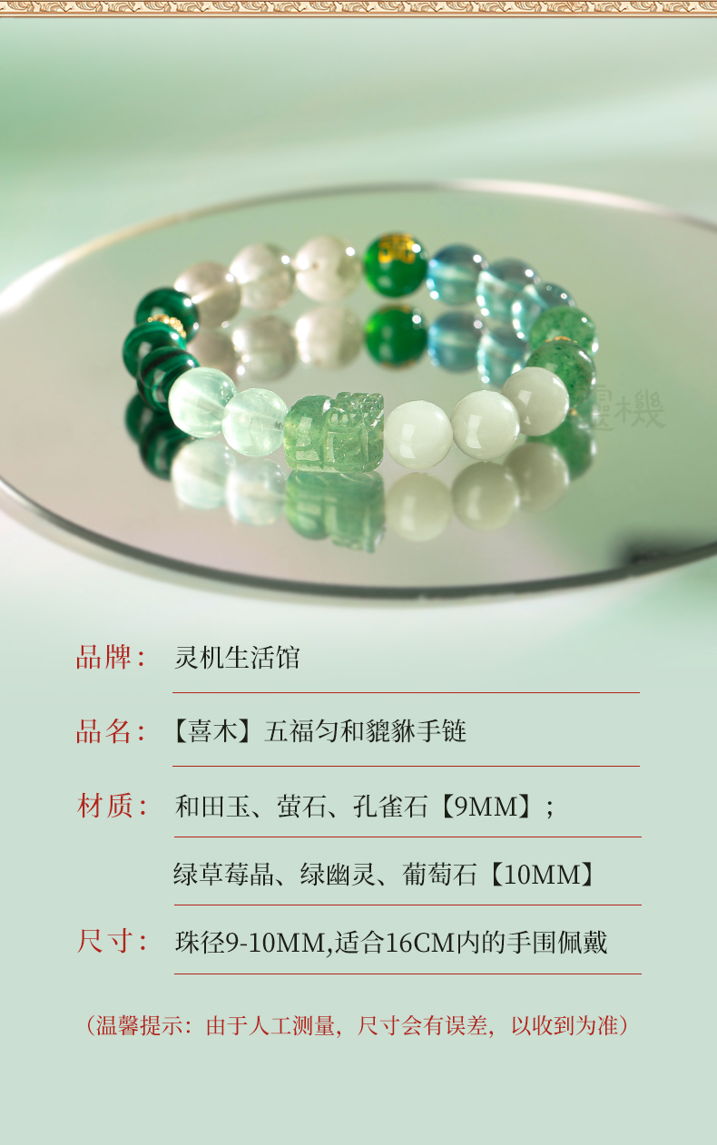 灵机生活馆【木火土金水】五福匀和貔貅手链女 手串礼物