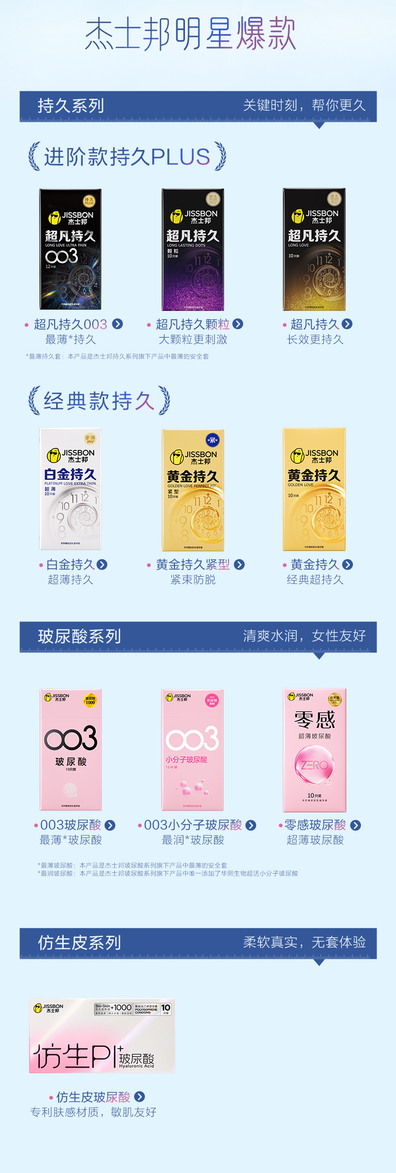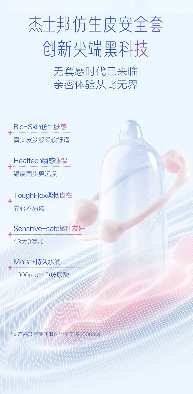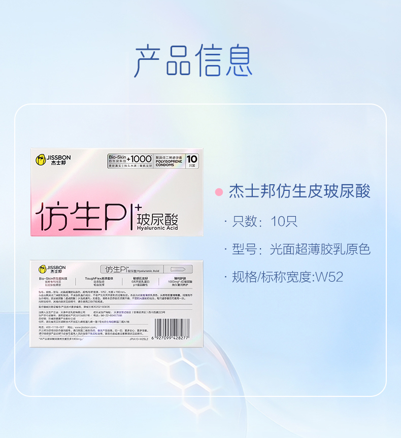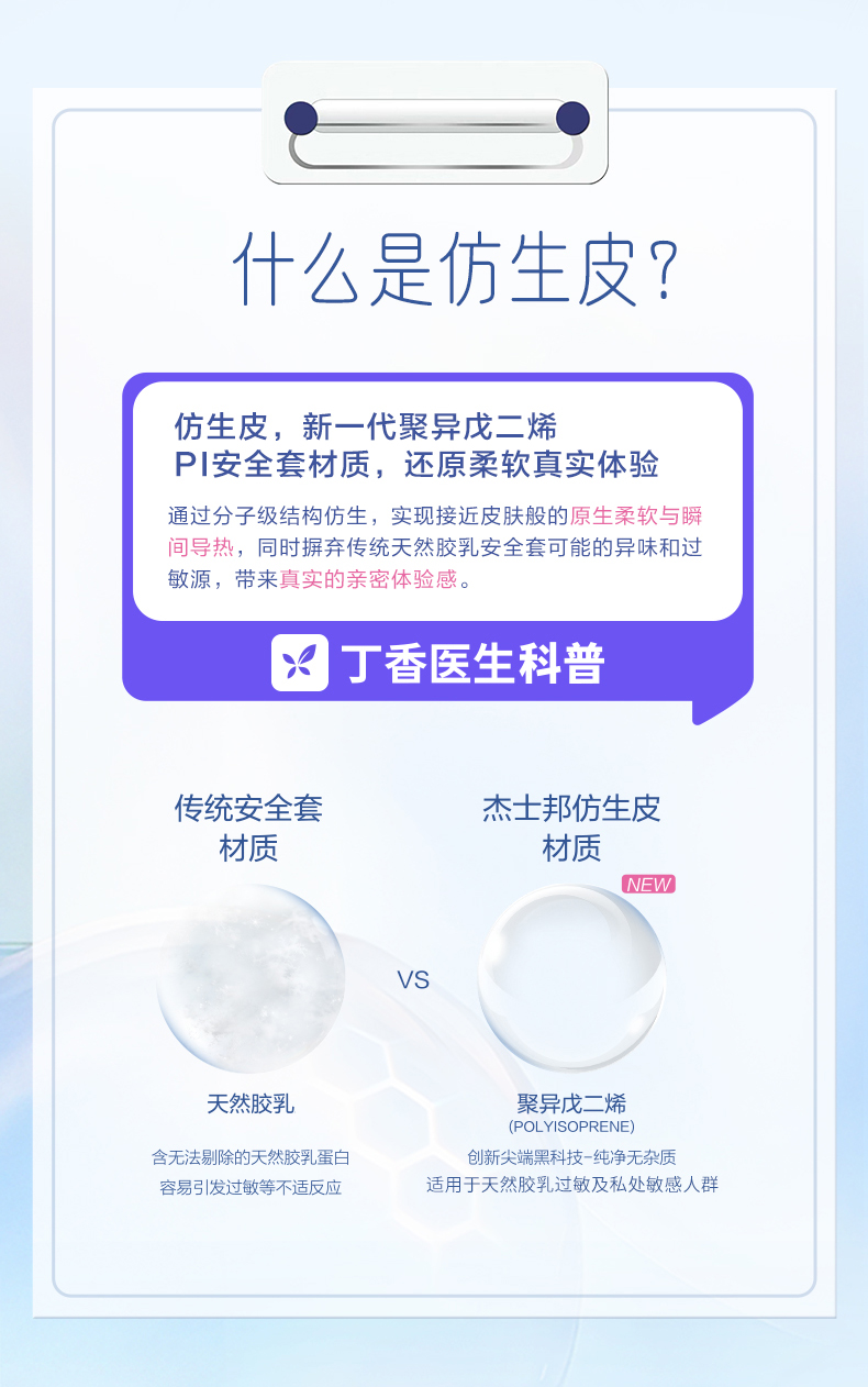 【跨时代新品】杰士邦仿生皮|非乳胶避孕套PI玻尿酸超薄防过敏避孕套