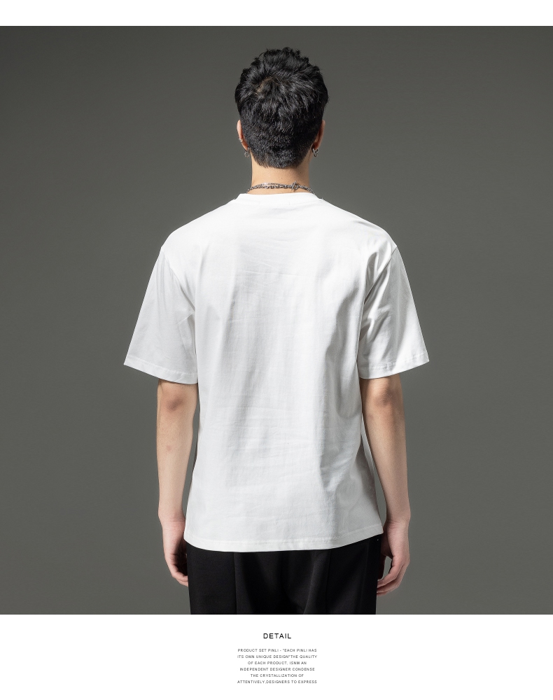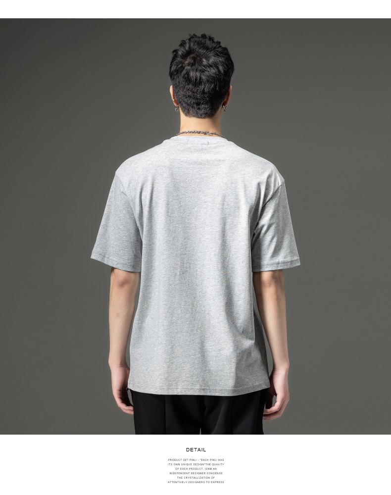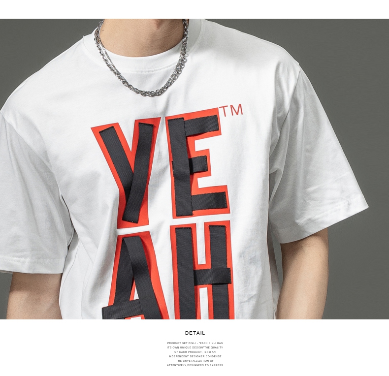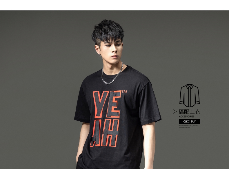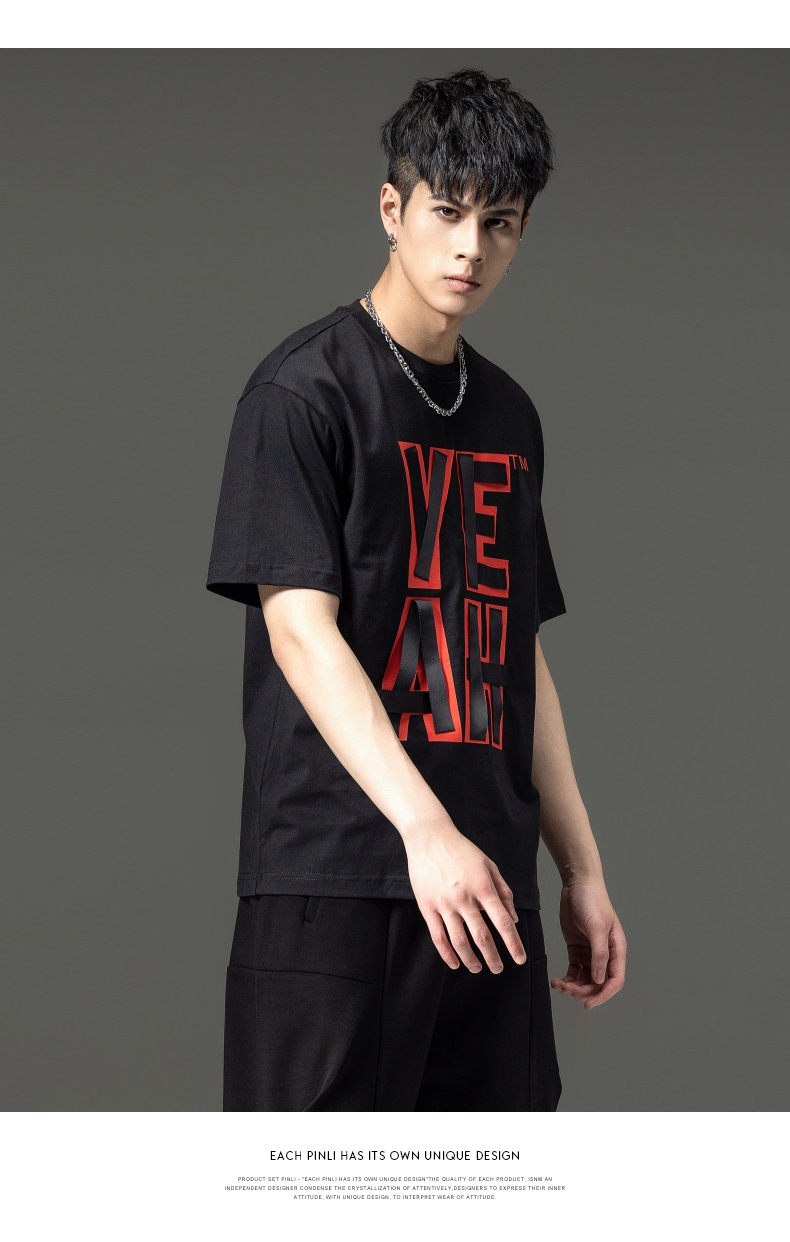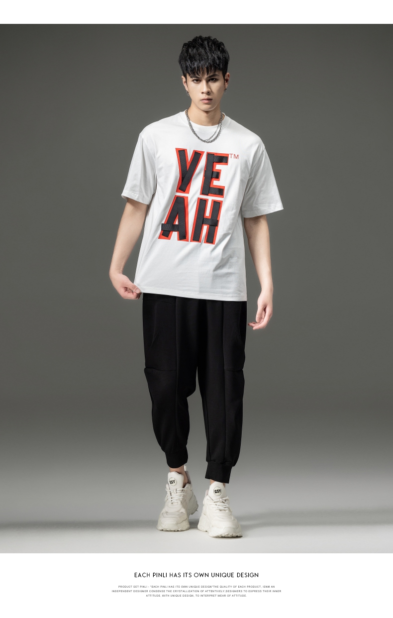 PINLI品立夏季新款男士印花拼接织带圆领短袖T恤BG231111063
