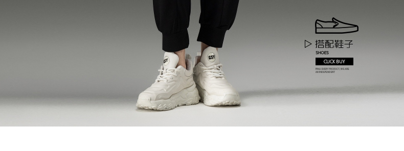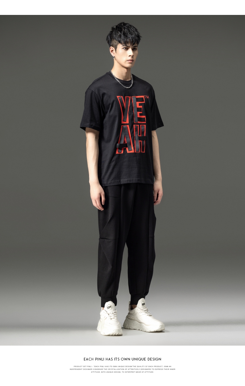 PINLI品立夏季新款潮牌褶皱工装裤男士黑色宽松直筒休闲长裤B252117076