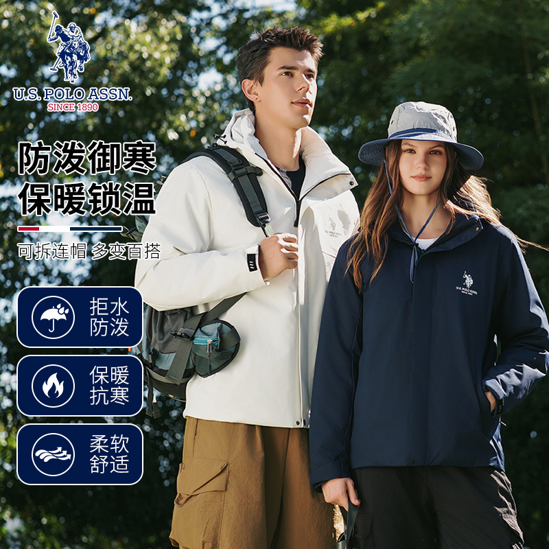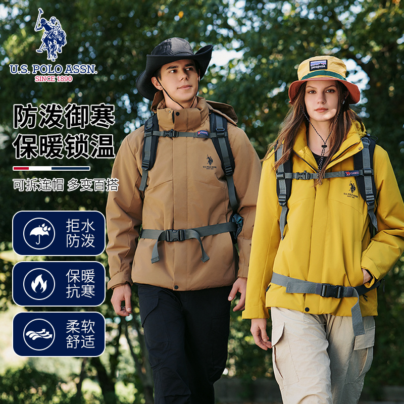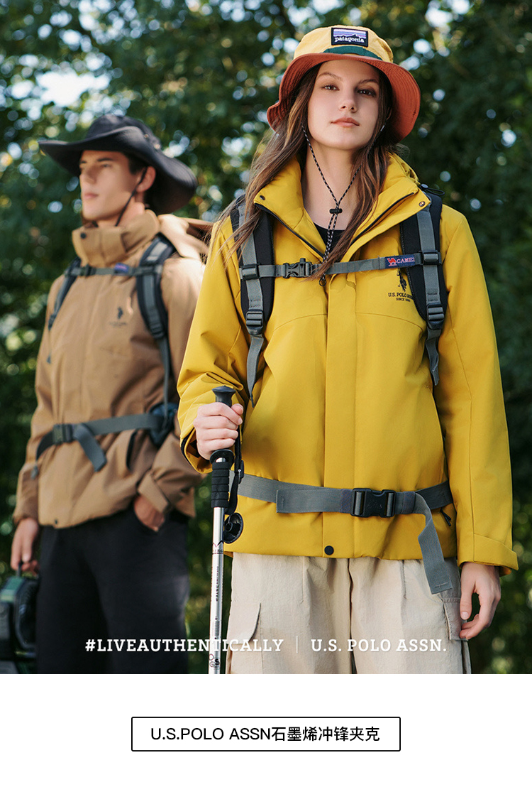 U.S.POLO ASSN石墨烯冲锋夹克外套 | 防风防雨水防污,户外登山软壳机能保暖【7天内发货】