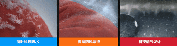外层采用高级的聚酯纤维+类似荷叶拒水的科技。
