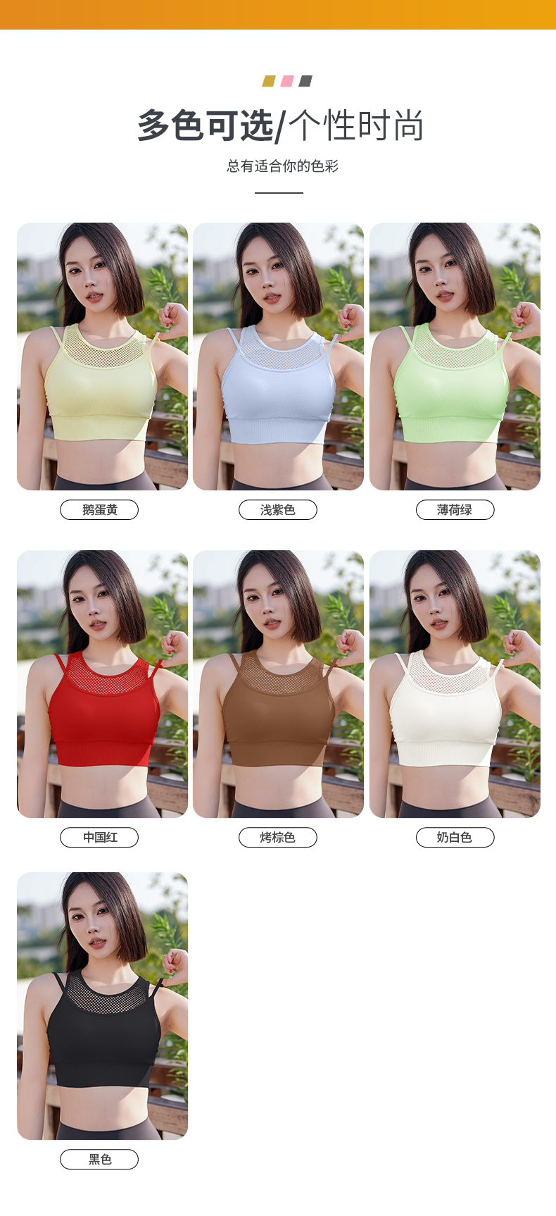 跃牌【安琪拉系列】吸湿排汗高弹3D无缝一体织瑜伽健身内衣假两件WX2432