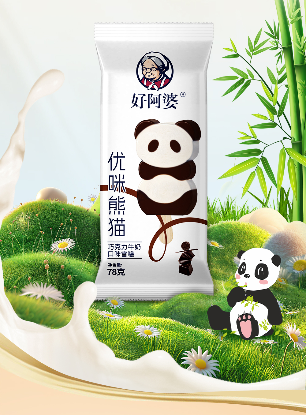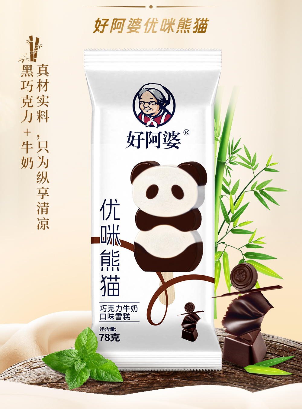【新品】好阿婆优咪熊猫雪糕巧克力牛奶冰淇淋网红可可冰糕 78g