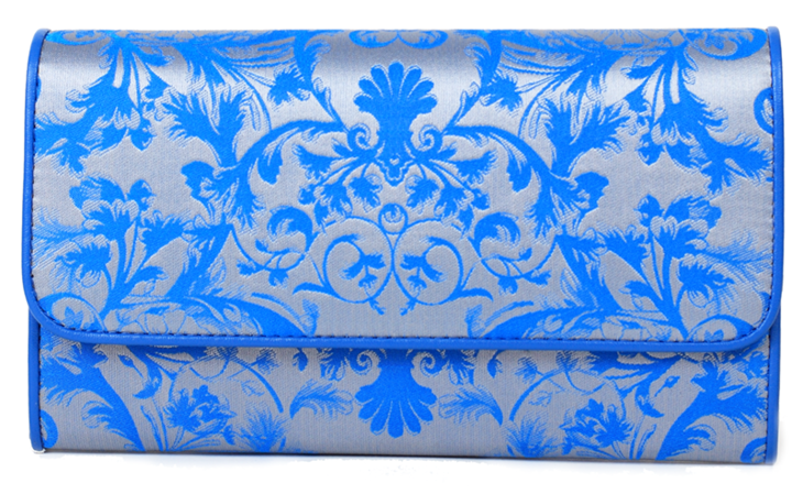 “珍珠白沁就烟雨,孔雀蓝映著月光。”手包设计灵感源于传统的青花瓷图案,简洁、优雅,透露着浓浓的中国情。手包的青瓷图案运用现代定位色织提花工艺,搭配完美的皮革滚边,大气而优雅。选用100%桑蚕丝面料,采用专利技术进行防水、防污、防油的三防处理,实用和外观两者兼得。