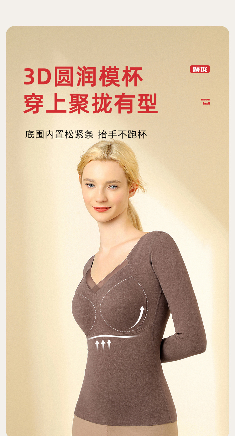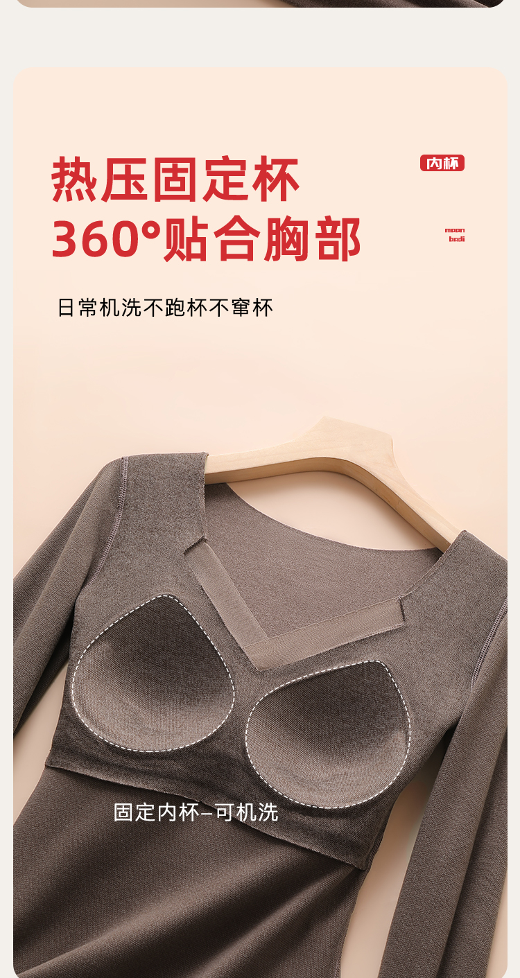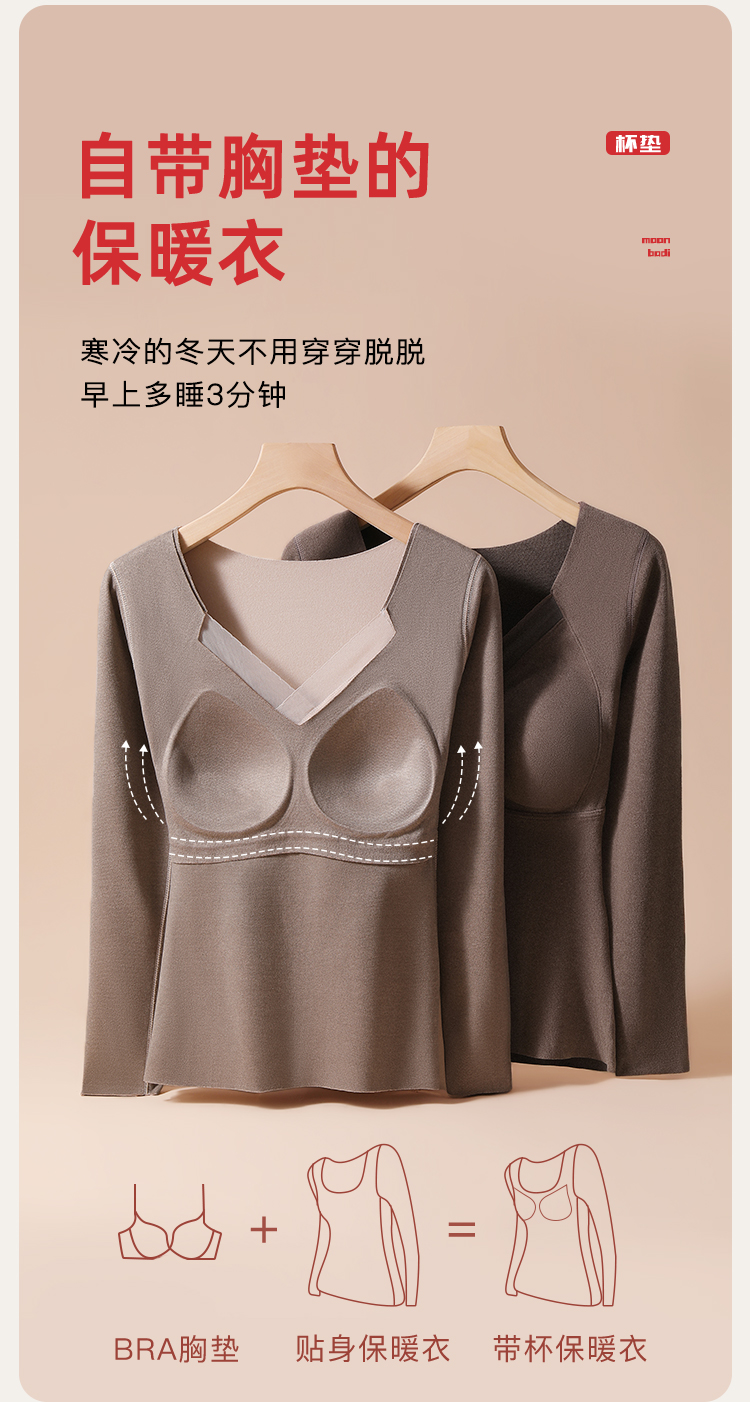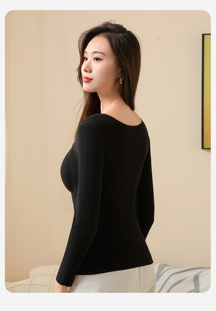 【免穿文胸】带胸垫秋冬女式保暖上衣隐形秋衣打底上衣高弹亲肤交叉网纱保暖上衣