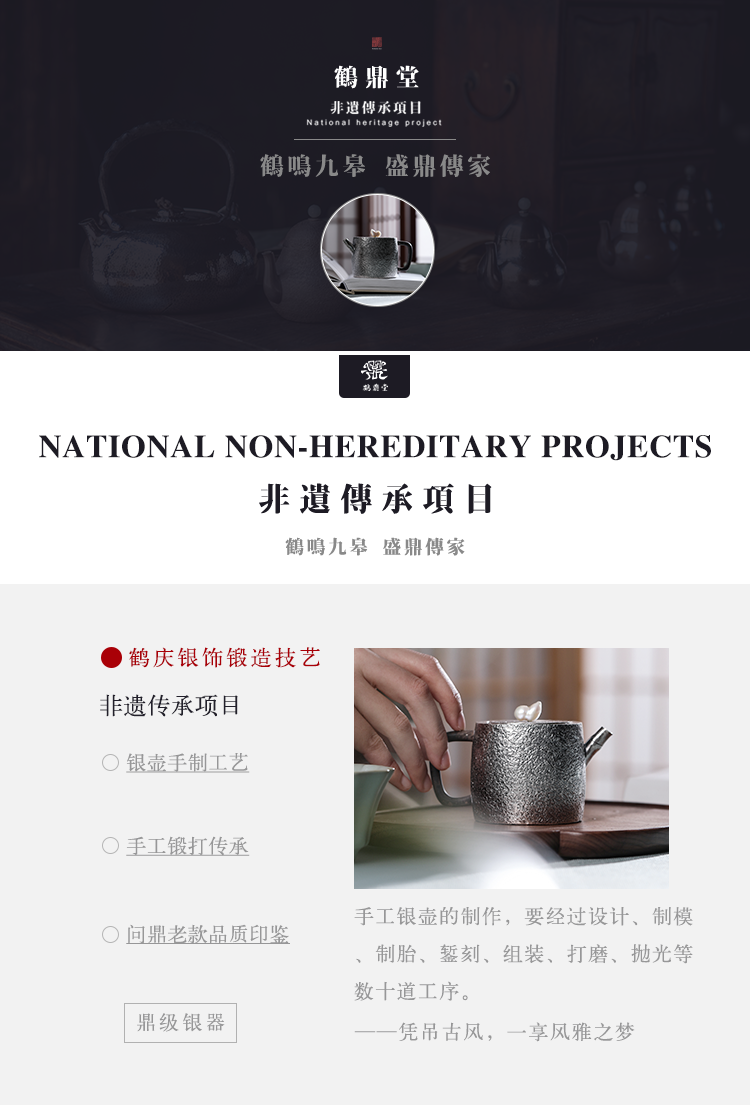鹤鼎堂 闻天游遨麻纹急须(银色)(缺货)