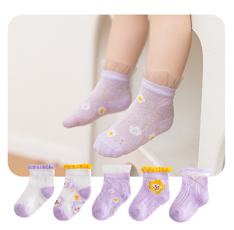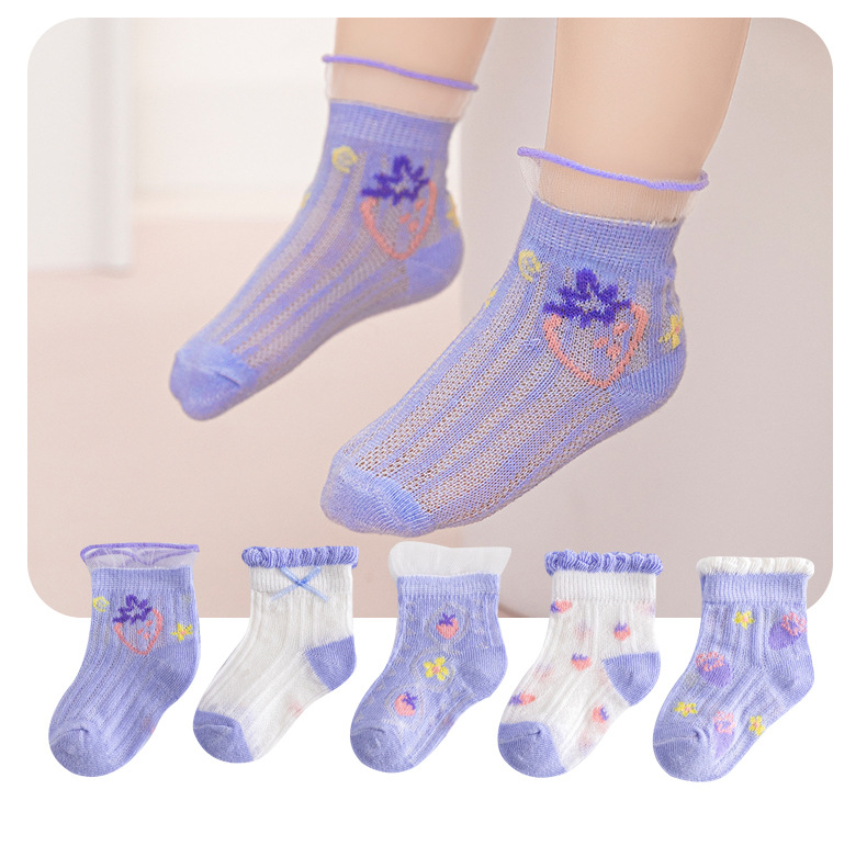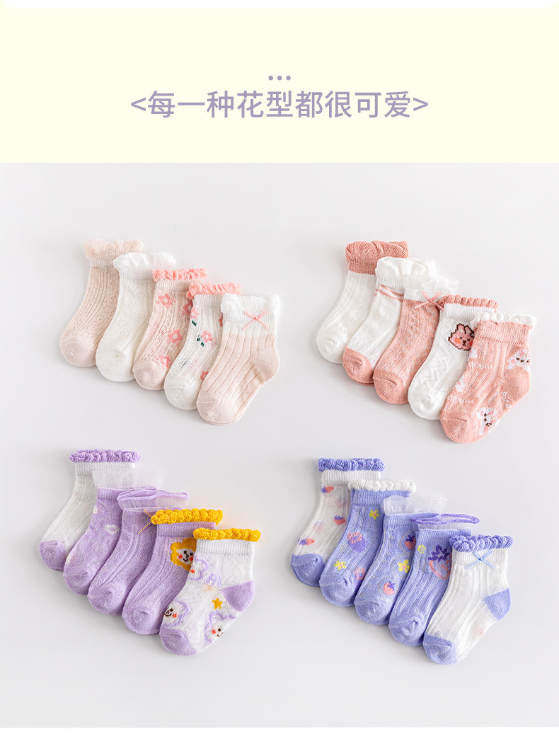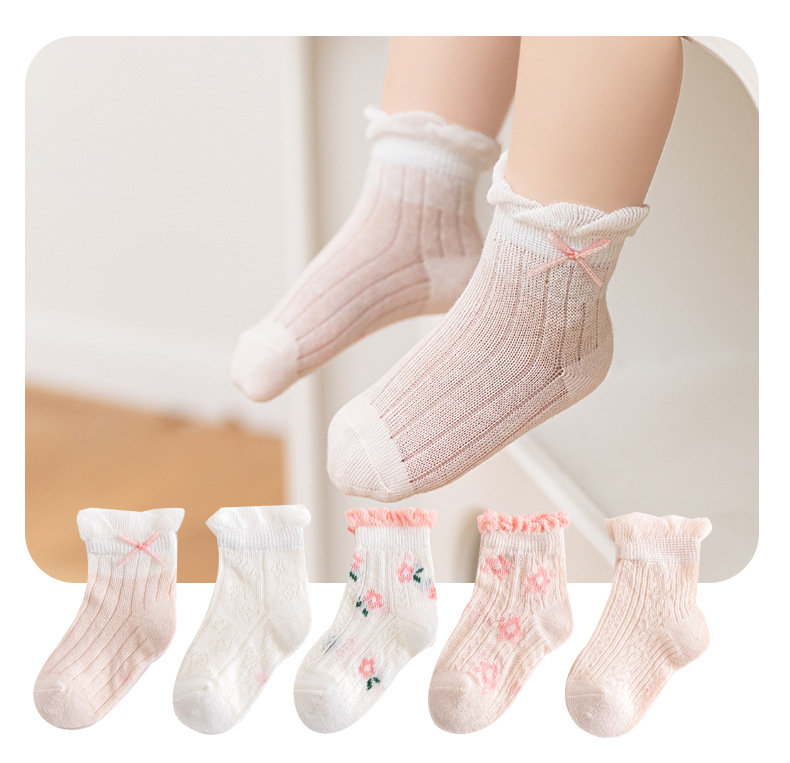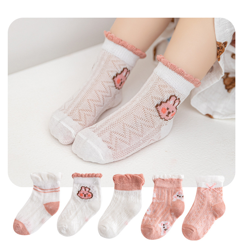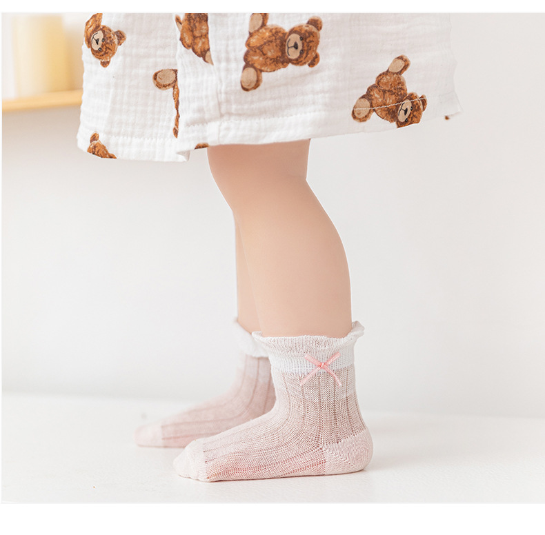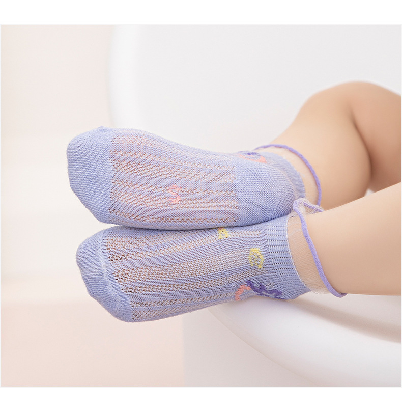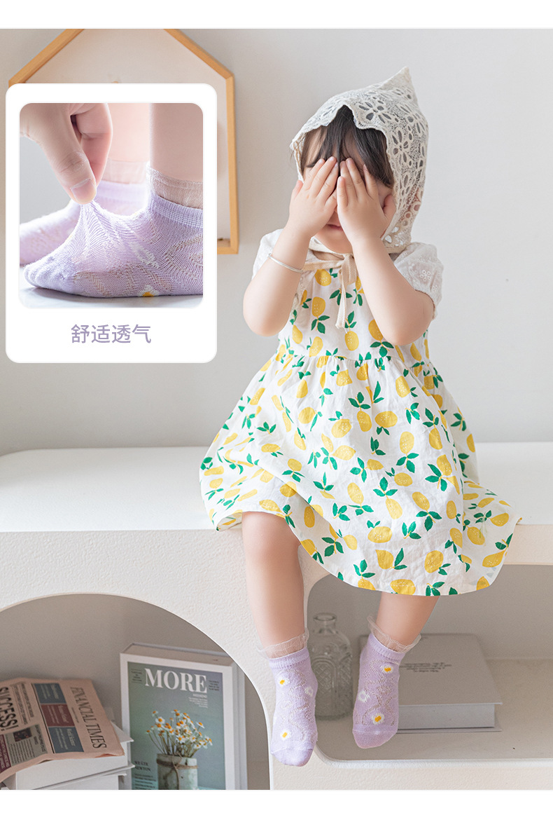 【卡通超薄网眼宝宝防蚊袜】儿童袜子新生儿春夏薄款网眼袜花边公主风女宝宝中筒袜子