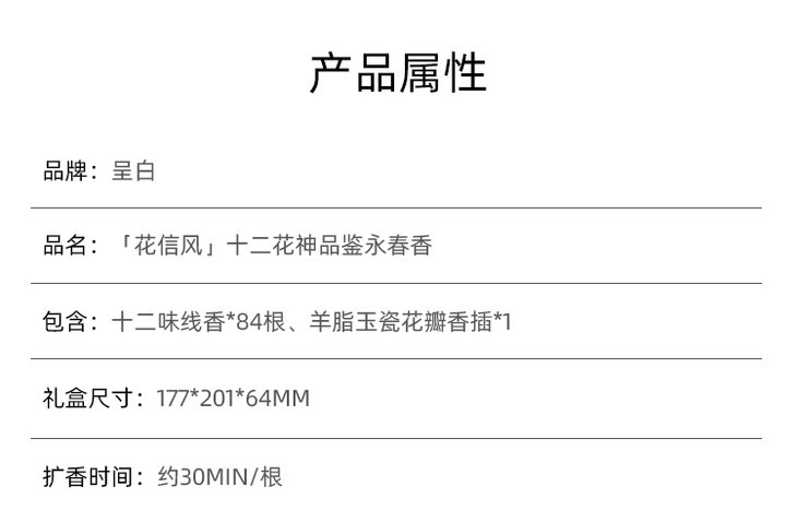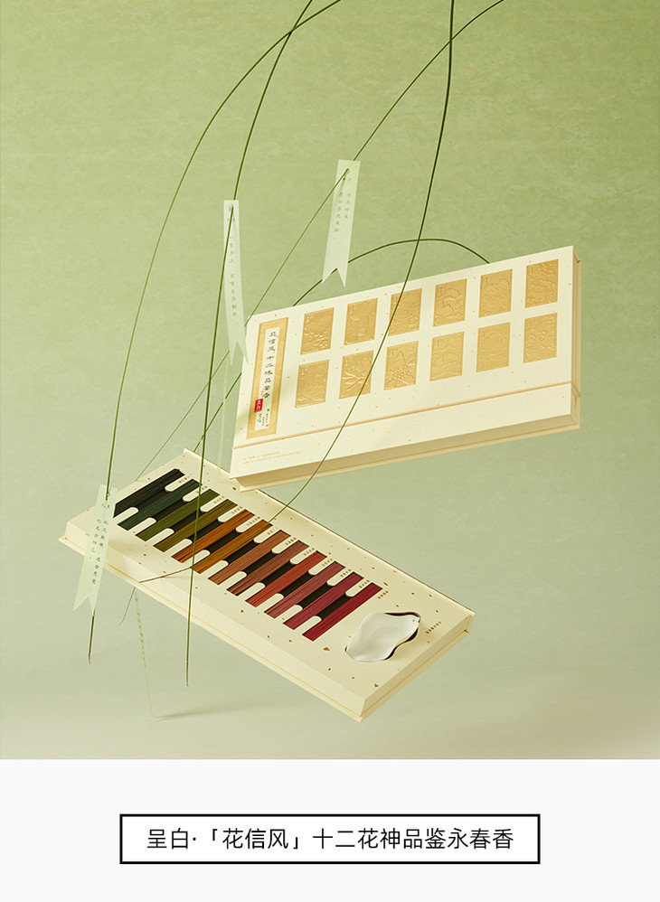 这款来自呈白的十二味品鉴永春香,一盒集齐了12个月的时节花香。