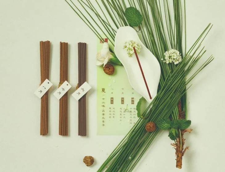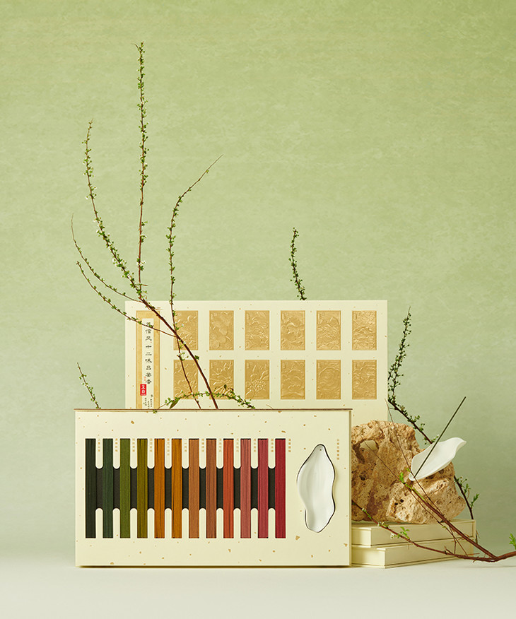 今天,传统的线香又生发出饱含植物精油的丰富十二味,复刻一年可嗅的四季芳菲。
