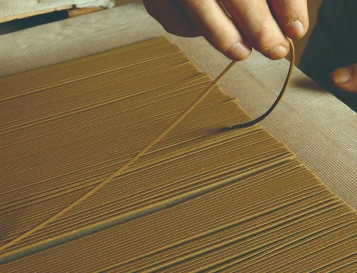 切香这一步,看似简单,实则要求成型的线香成笔直的线条状,且长短均匀,十分考验着制作者的精确度。