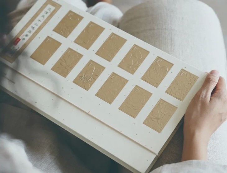 目光流转在烫金的十二花笺之间,好像能感受到温润的香气在停留。