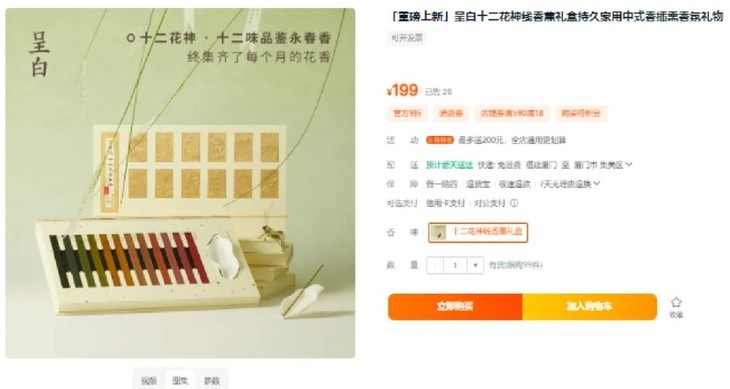 一份集齐四季的花香,官方平台原价199元,我们福利价只要159元,即可入手12味线香。