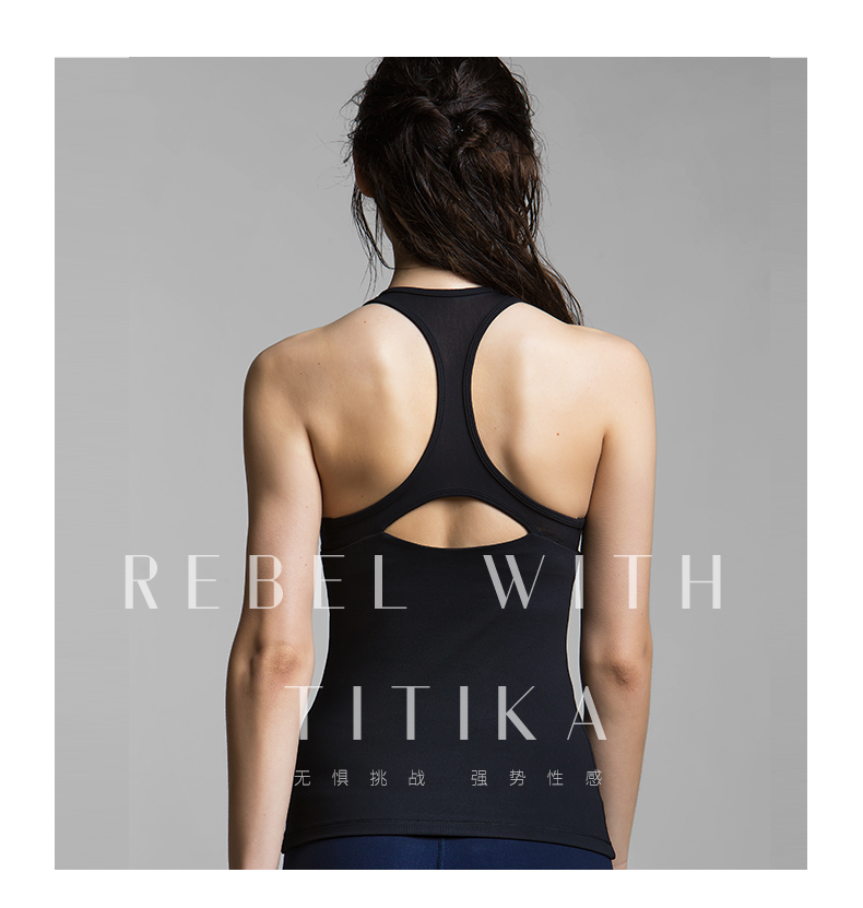 (建议拍大一码)TITIKA瑜伽服上衣户外运动健身上衣弹力紧身瑜伽背心(带胸垫)63260
