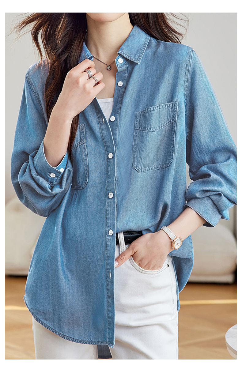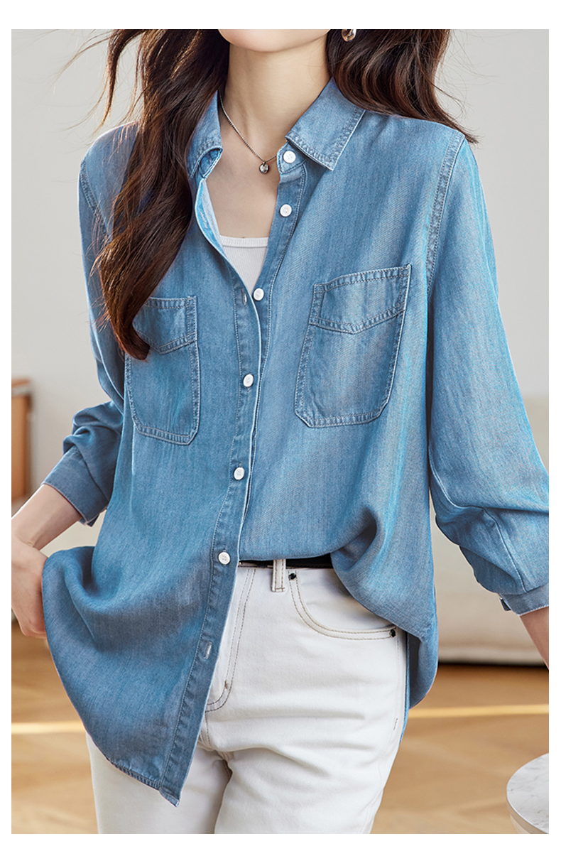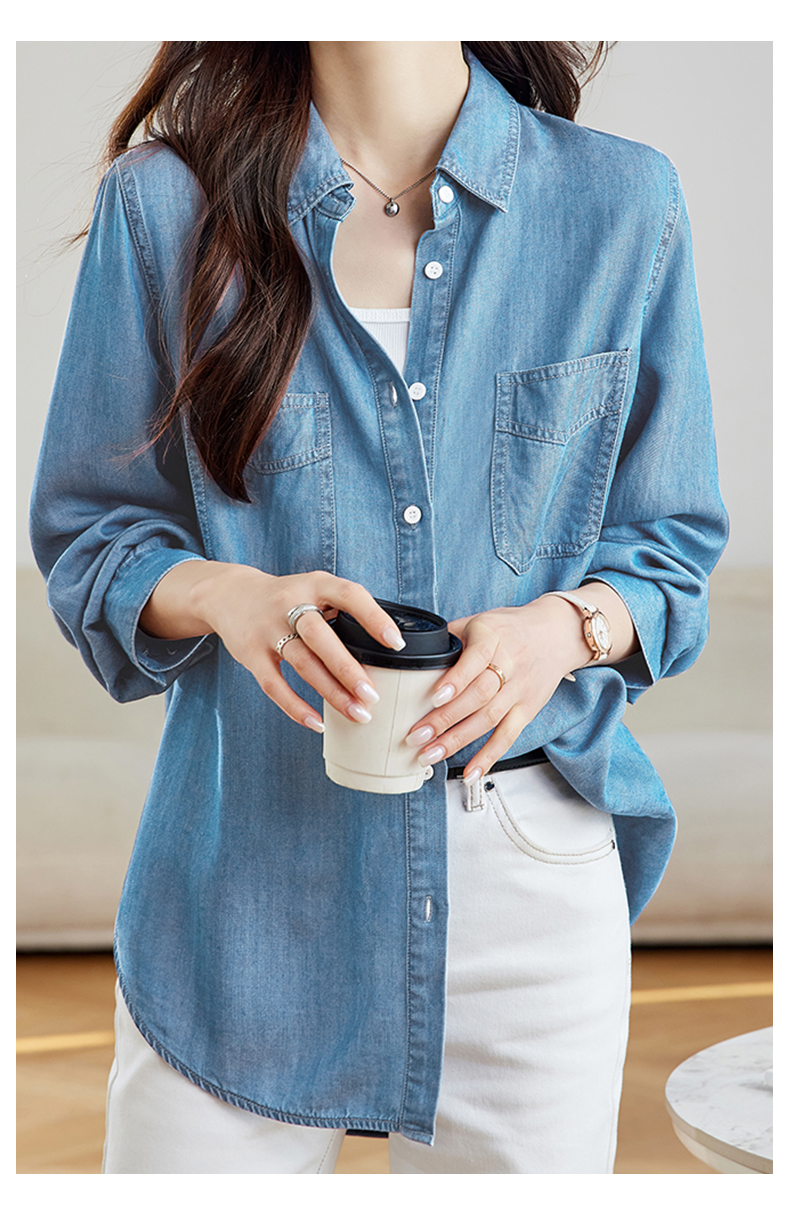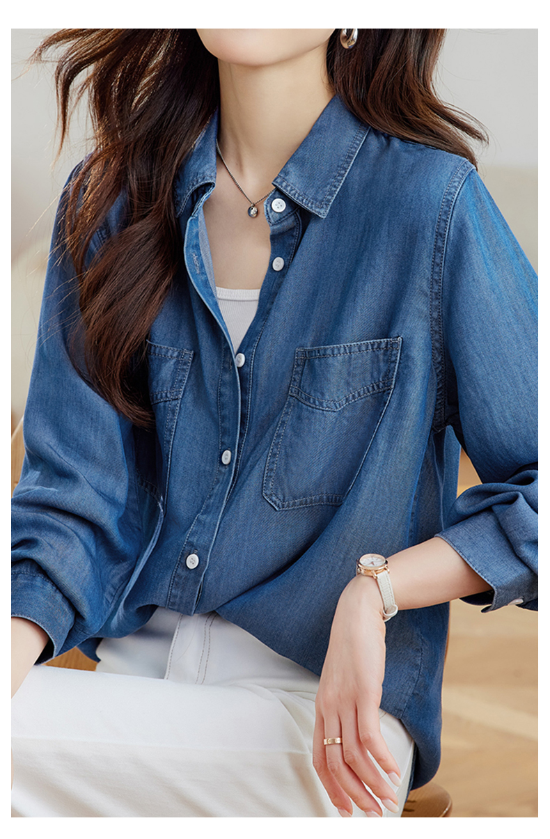 馥迦通勤百搭莱赛尔牛仔衬衫