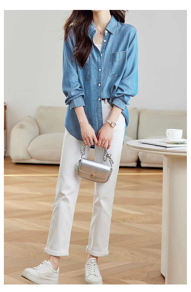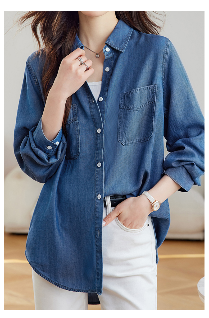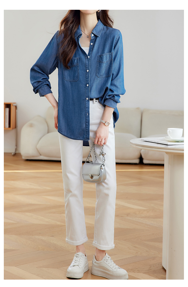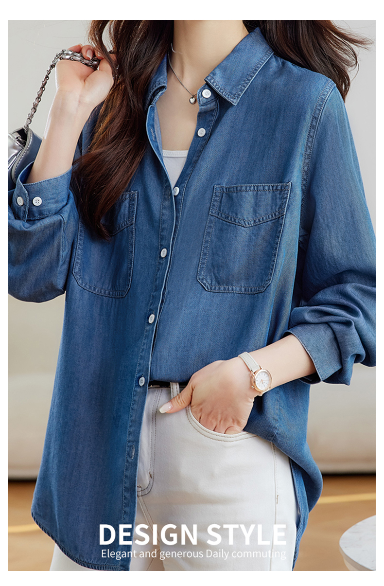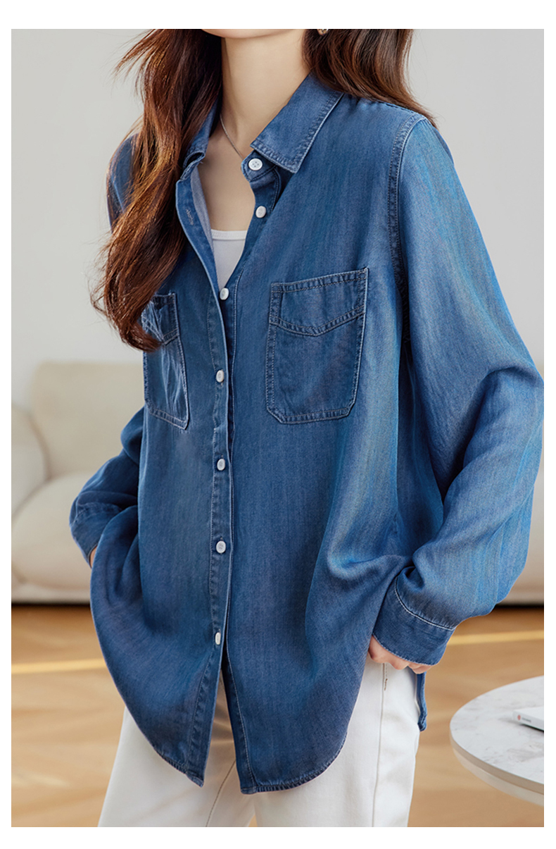 馥迦通勤百搭莱赛尔牛仔衬衫