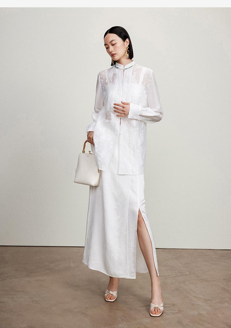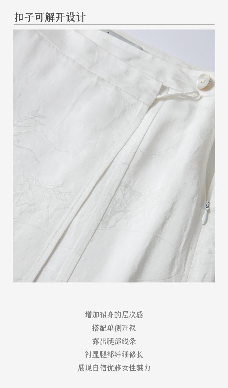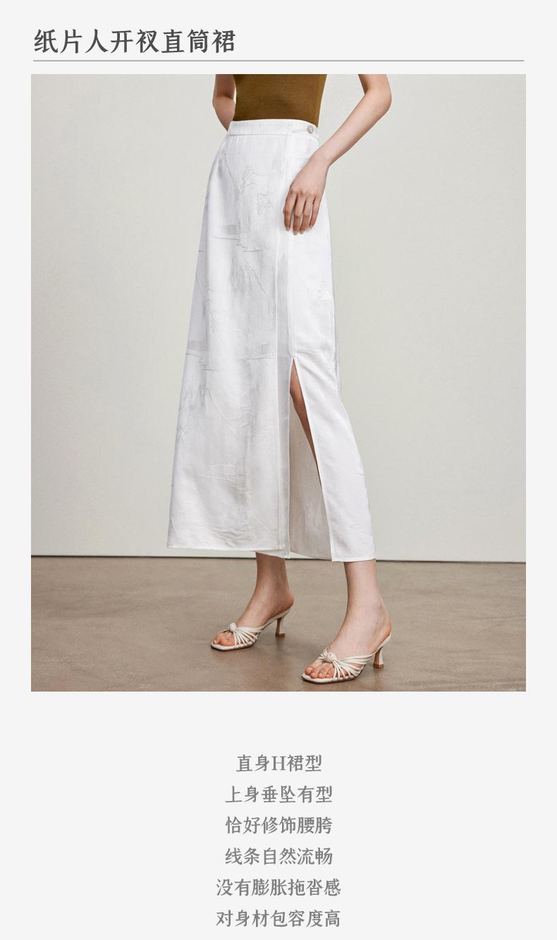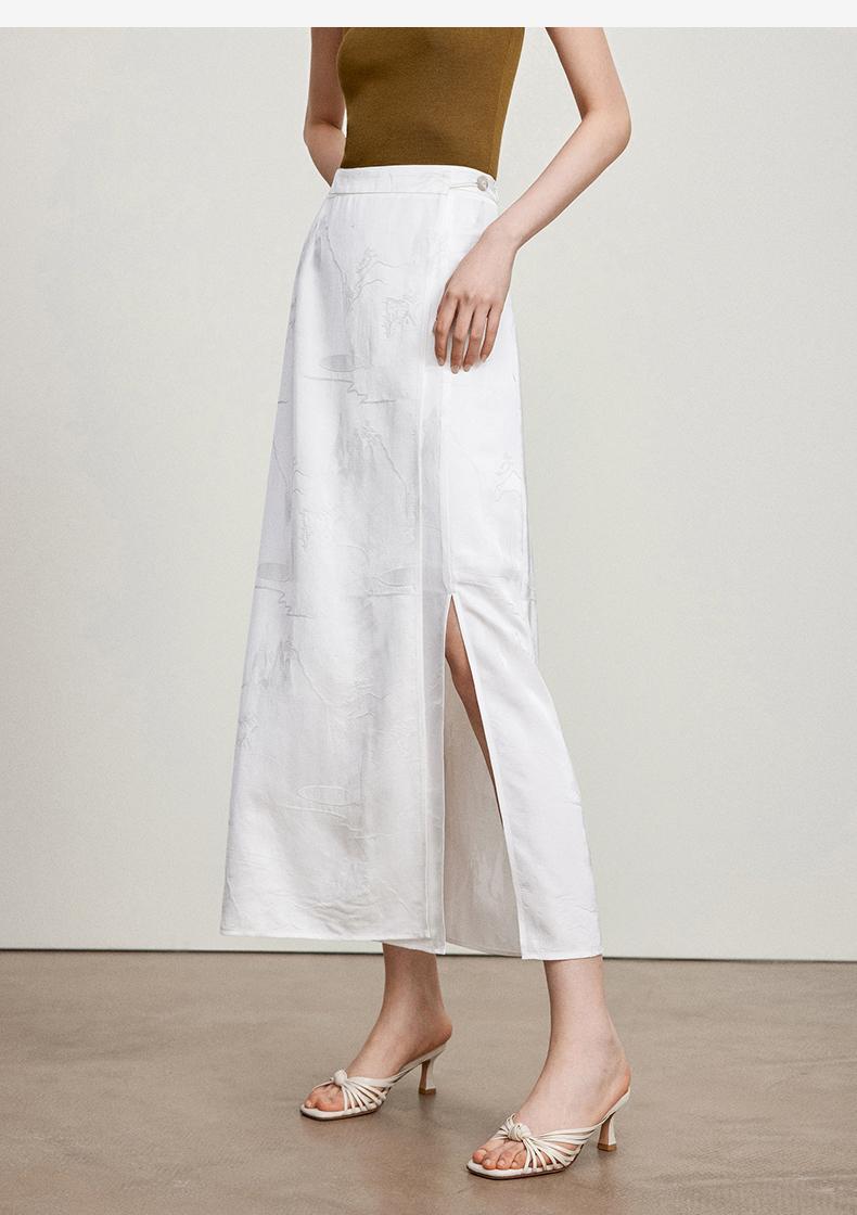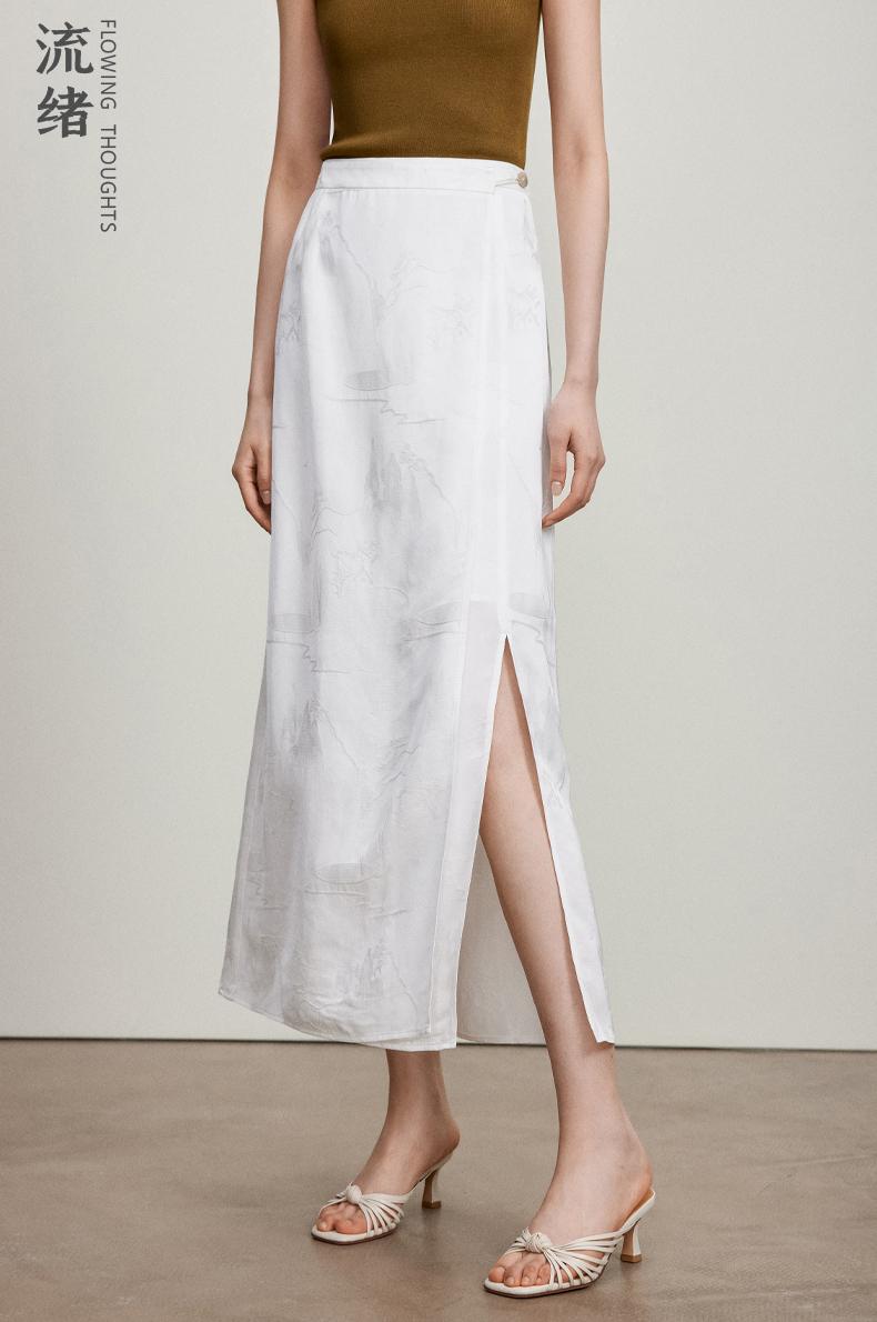 西嘉C+IMPRESS/西嘉人丝提花直筒开衩白色新中式半身裙女夏季新款气质BQ2402033