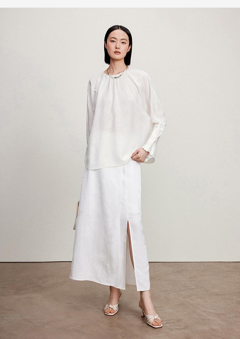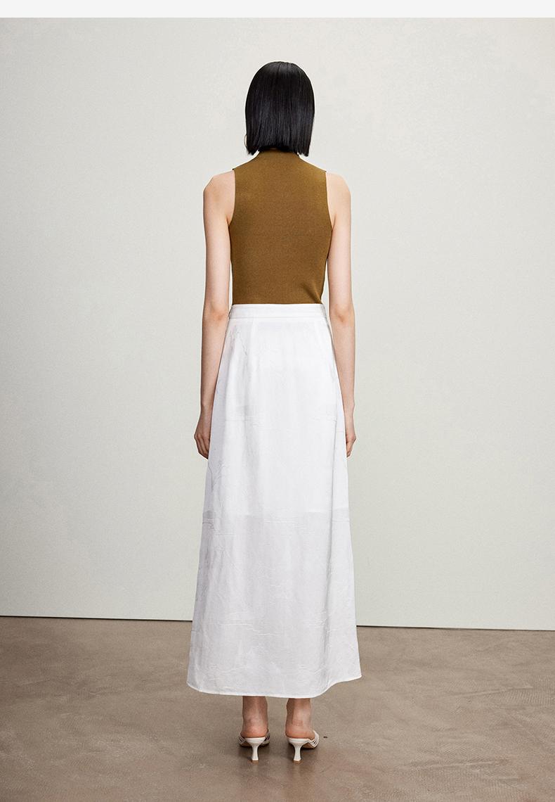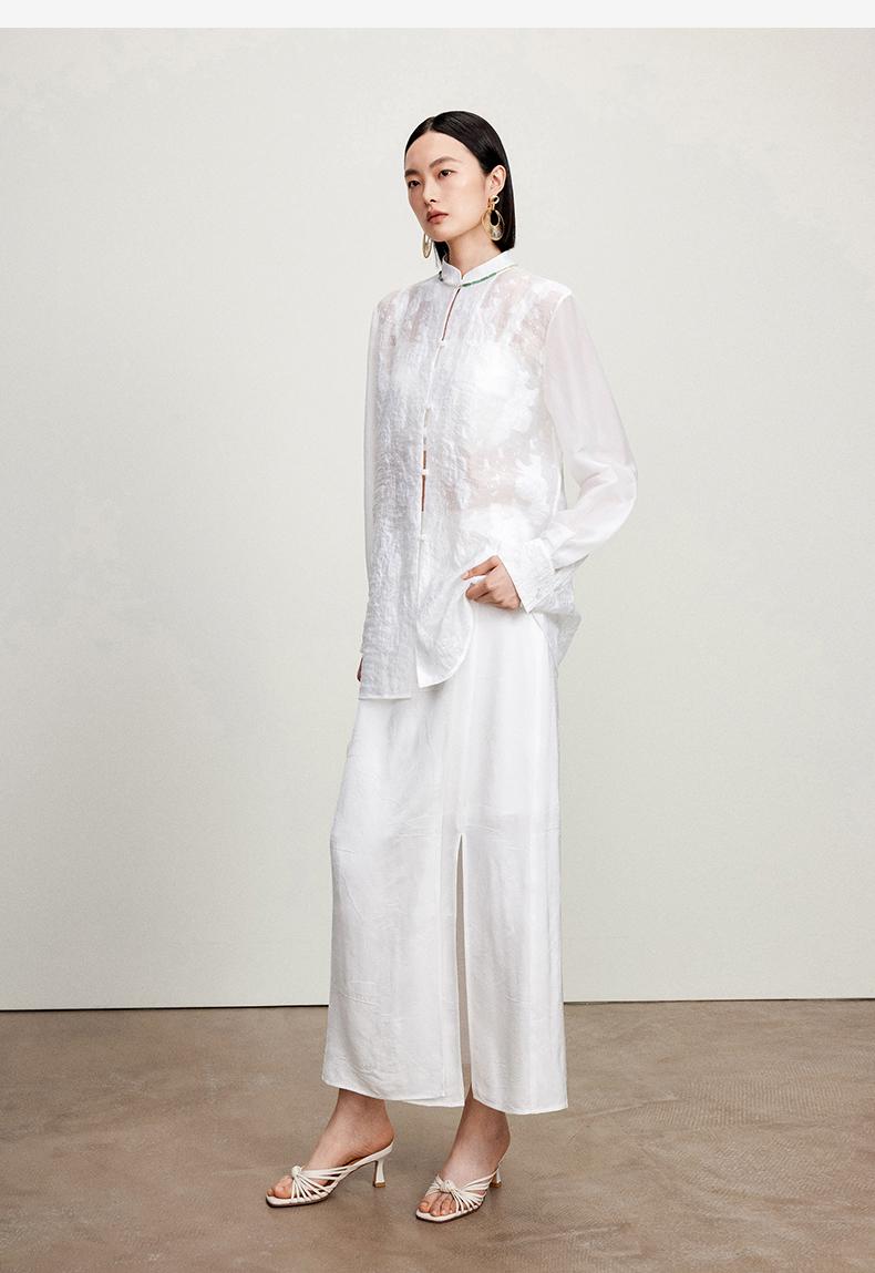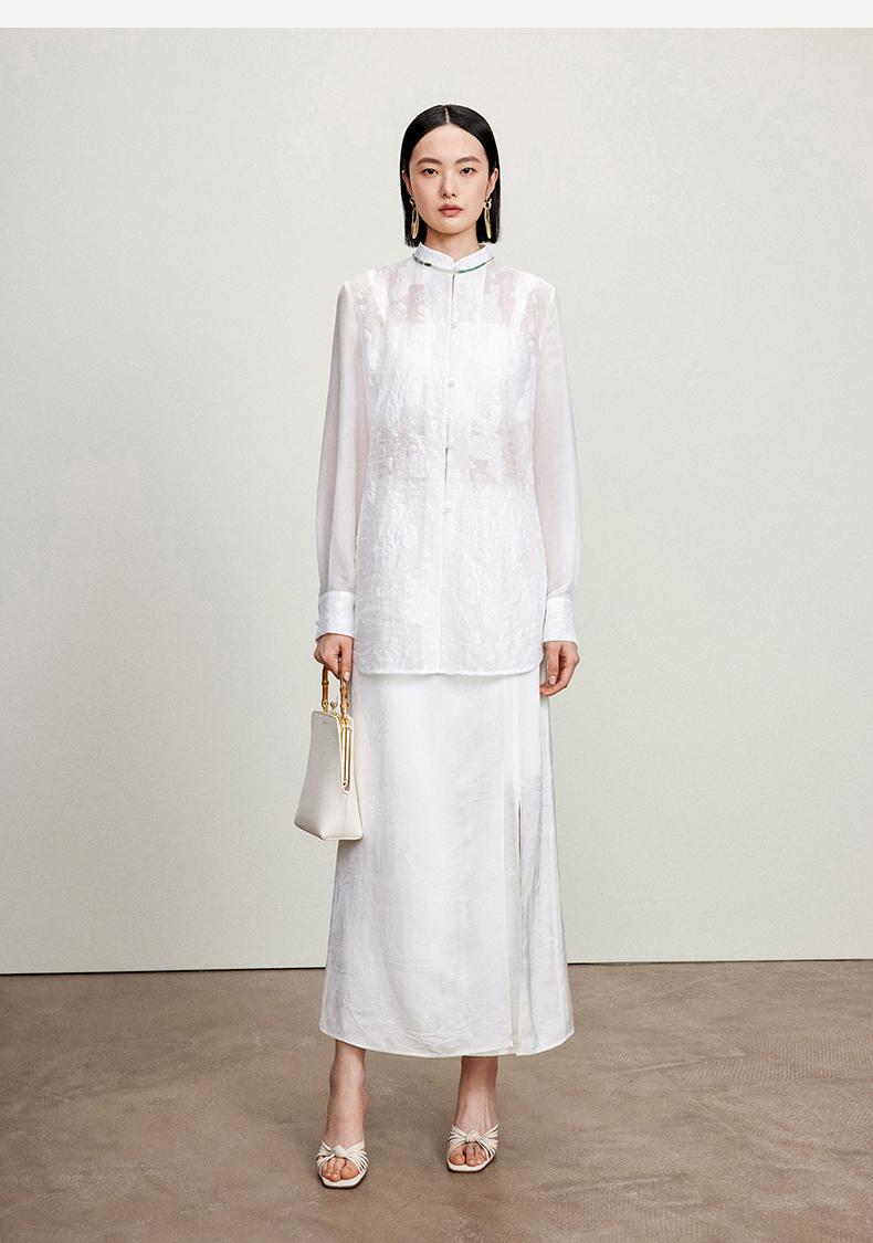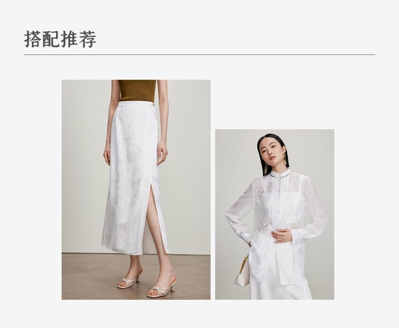 西嘉C+IMPRESS/西嘉人丝提花直筒开衩白色新中式半身裙女夏季新款气质BQ2402033