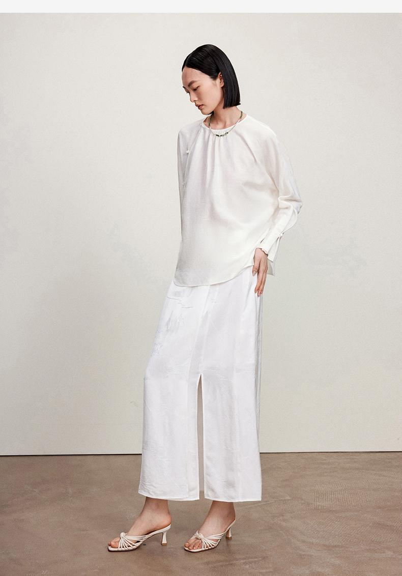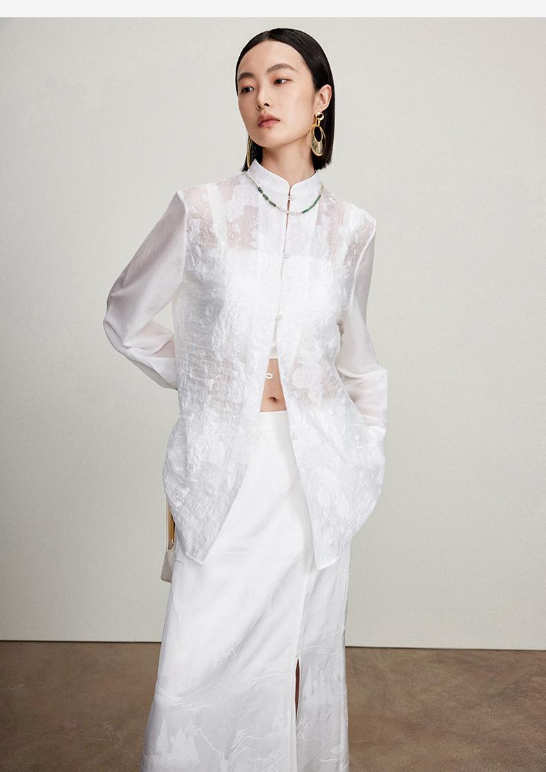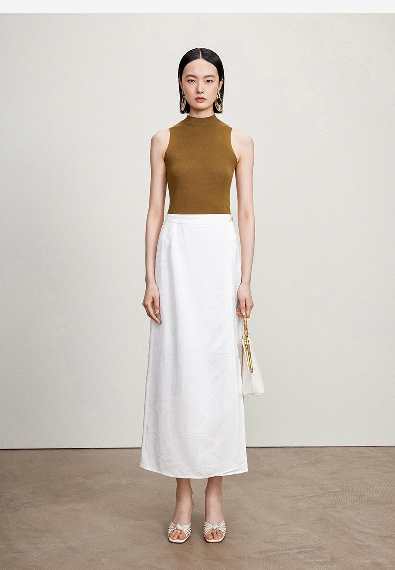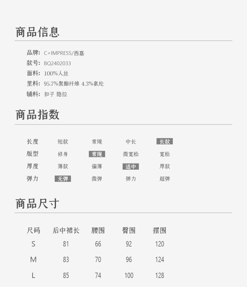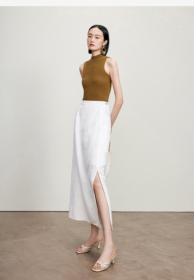 西嘉C+IMPRESS/西嘉人丝提花直筒开衩白色新中式半身裙女夏季新款气质BQ2402033