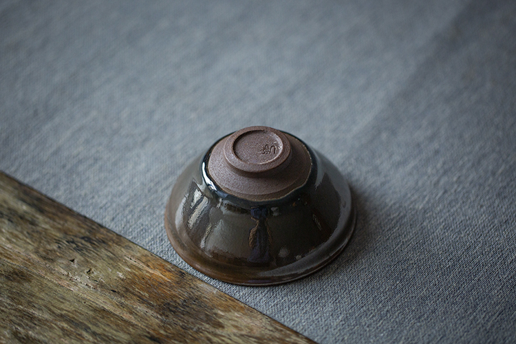 柴窑盏整体呈巧克力色,细细观摩杯身,