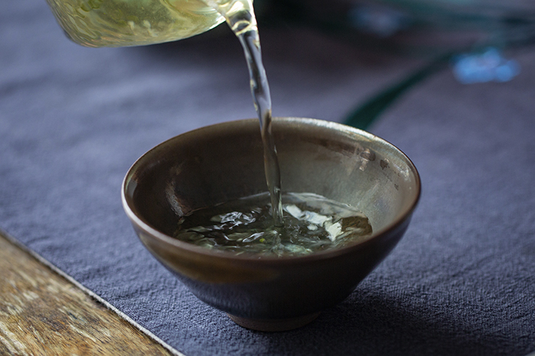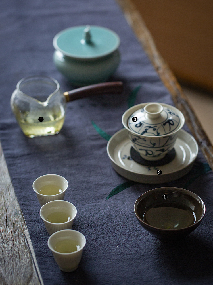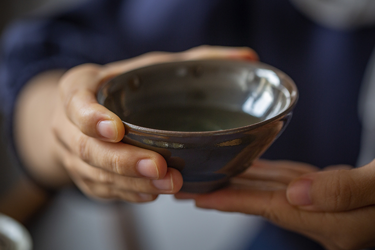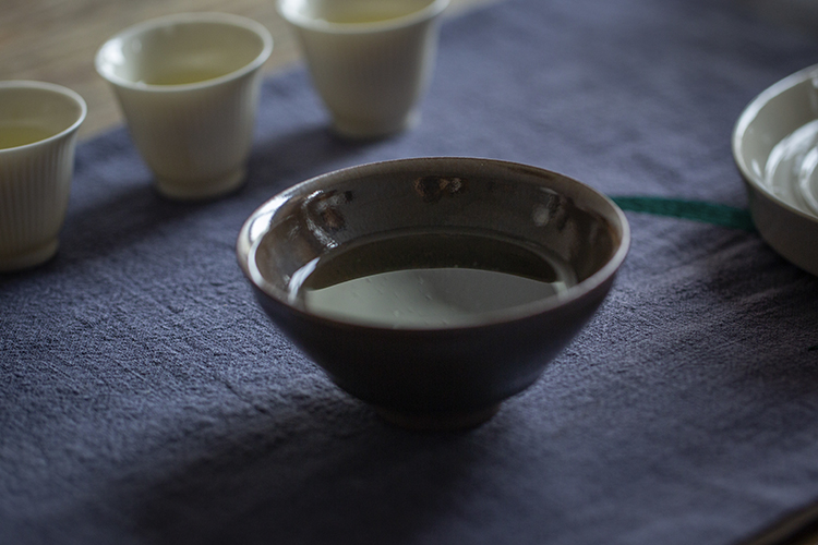 柴窑盏静置茶席之上淡然雅致,风韵盎然。