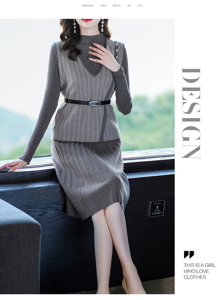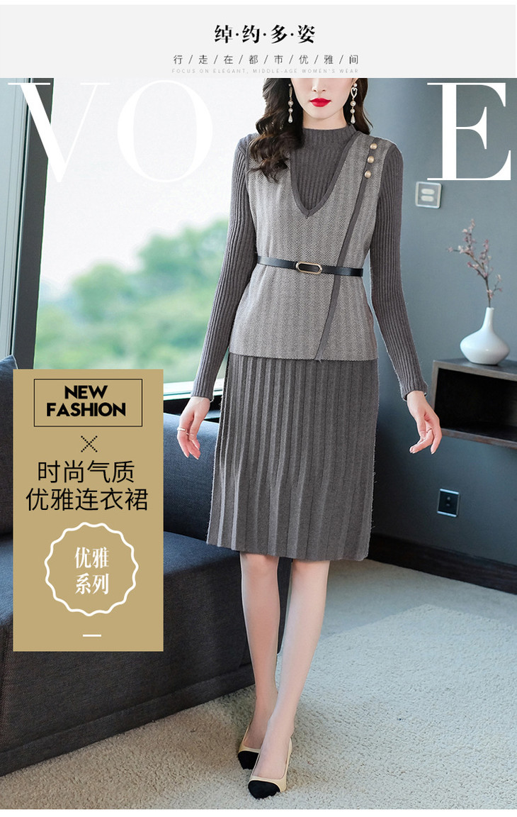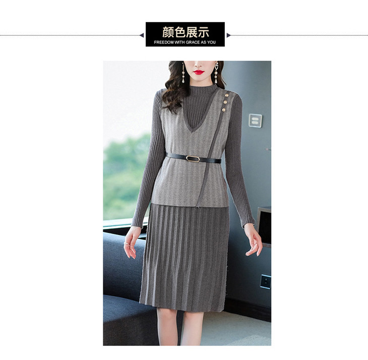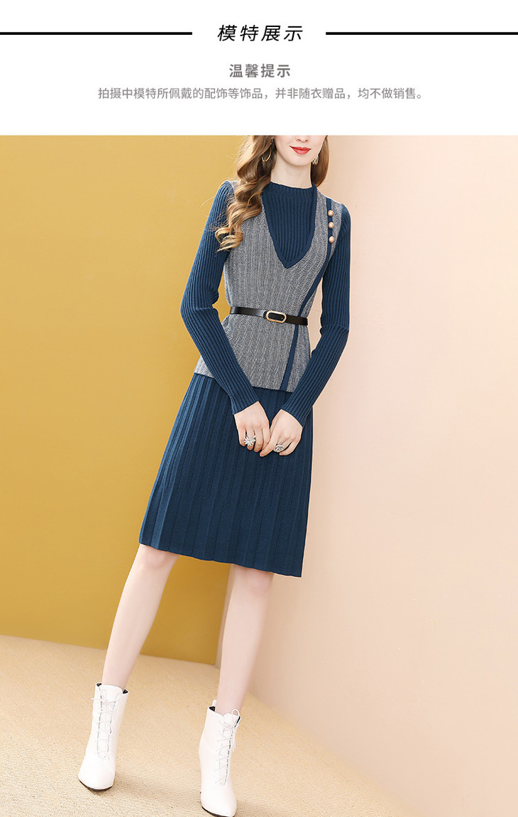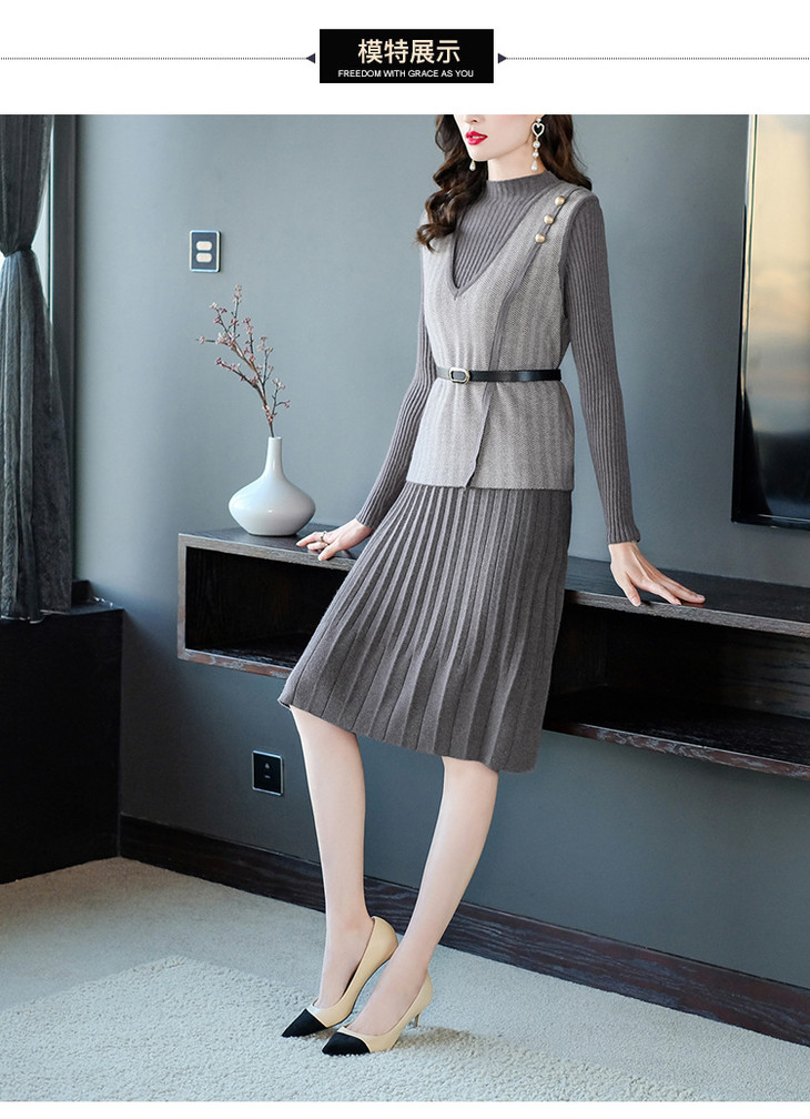 YM- 9175# 针织百褶裙+马甲背心两件套女秋冬2020新款轻奢