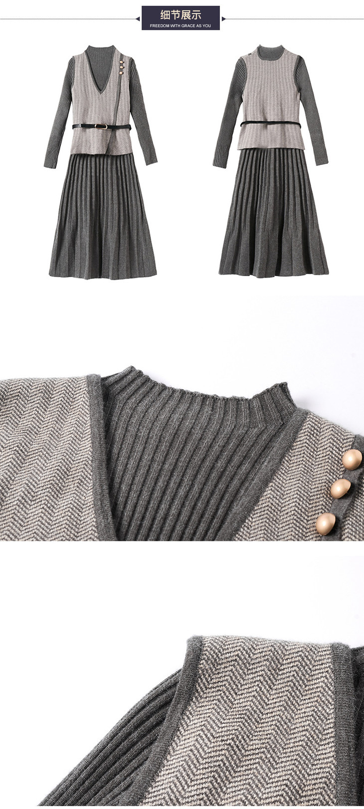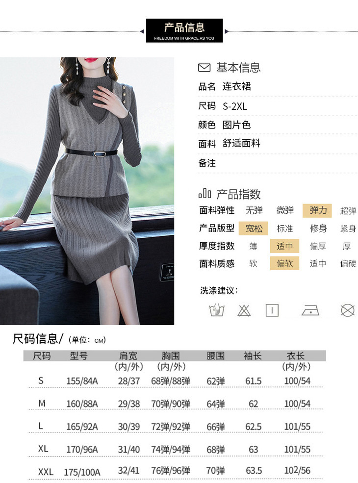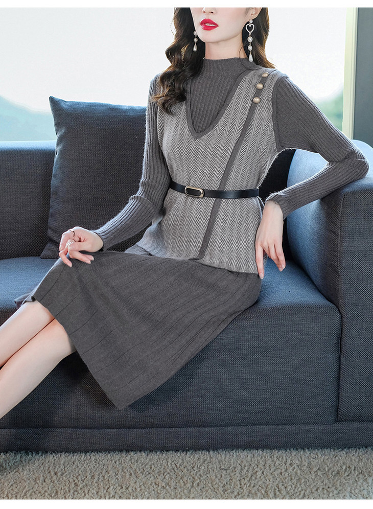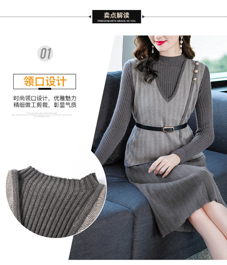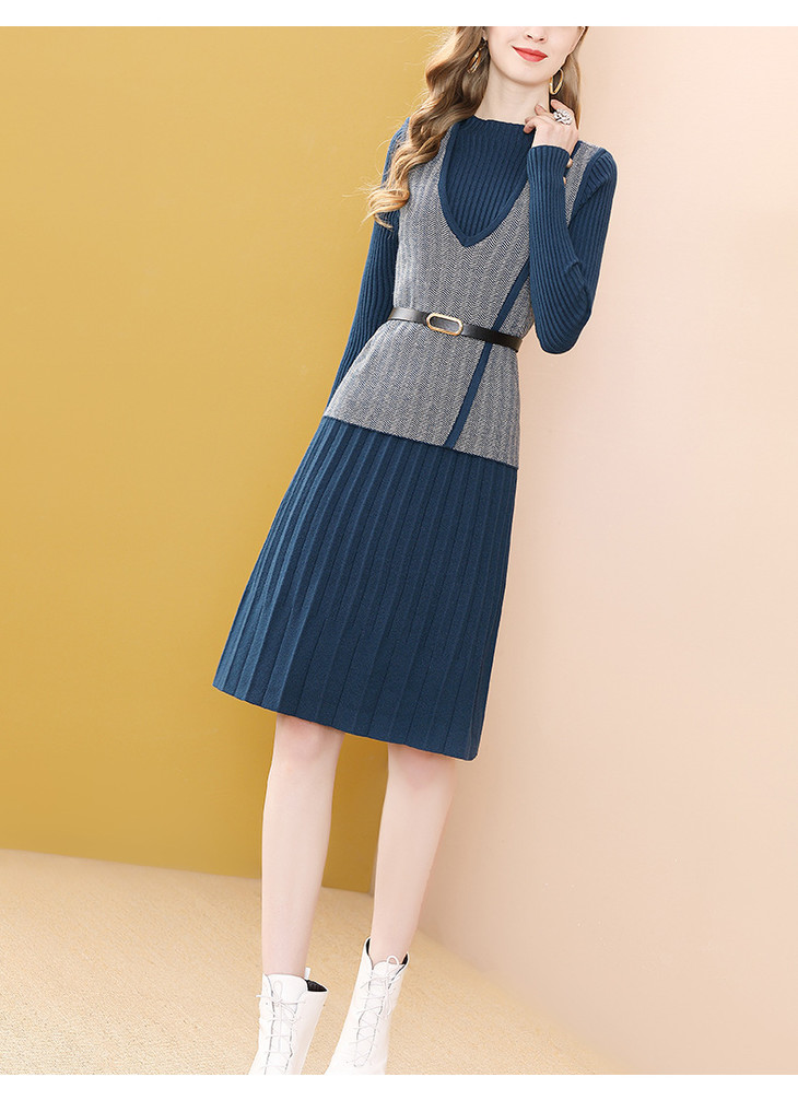YM- 9175# 针织百褶裙+马甲背心两件套女秋冬2020新款轻奢