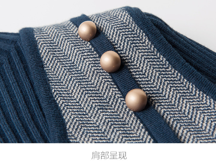 ALXBL1903中长款七分袖拉链2017年春季连衣裙花色V领中腰