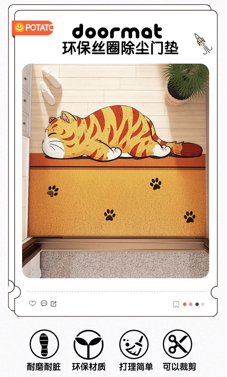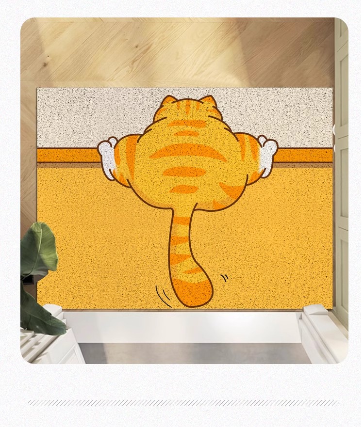 【刮蹭效果好,不把灰尘带回家!】入户门丝圈地垫,卡通大橘猫异形可水洗刮土蹭土进门PVC丝圈地垫,有效阻挡进门时带入的灰尘和污垢,保持室内清洁-QQ